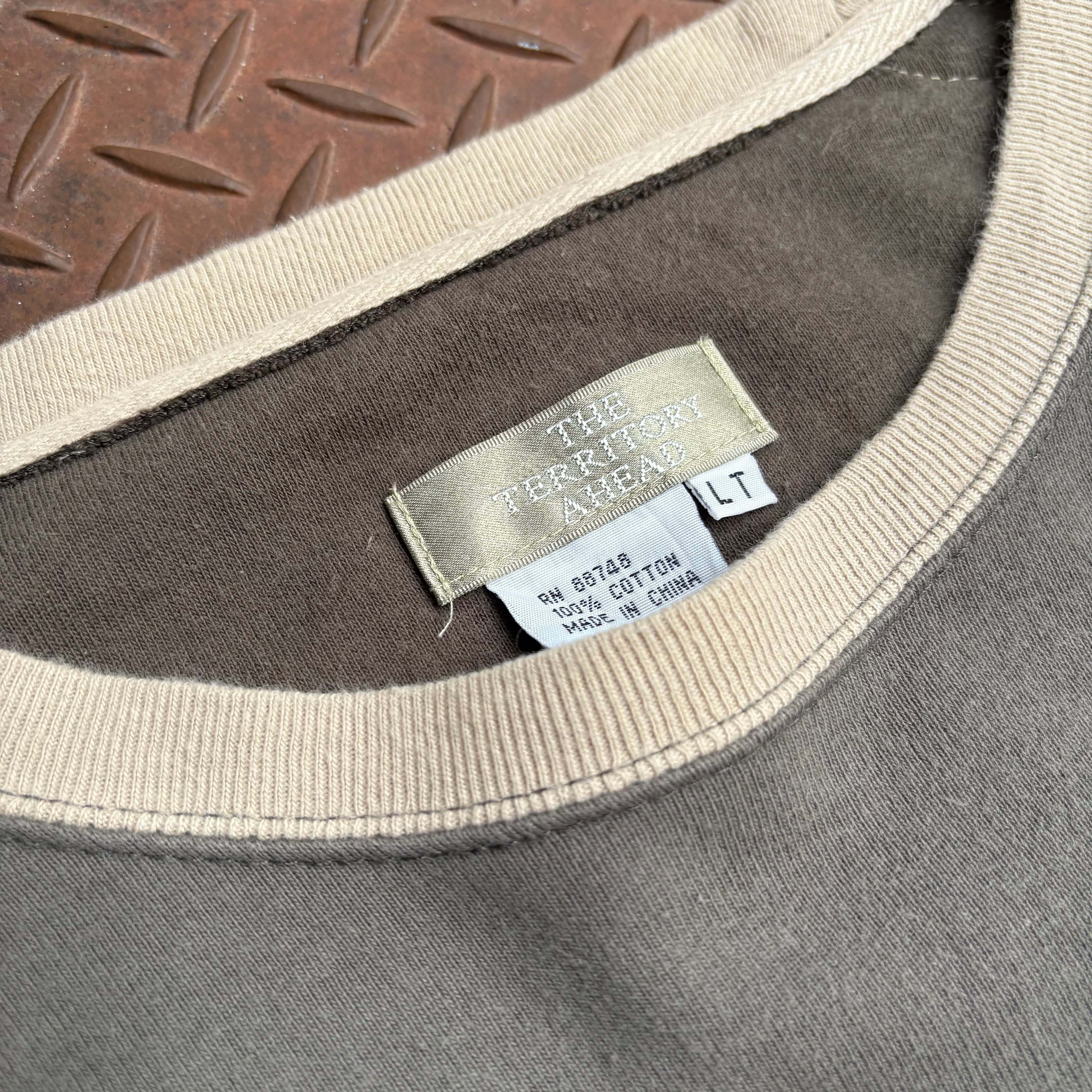90年代から00年代頃のTHE TERRITORY AHEADのフットボールTになります。巷で話題のテリトリーアヘッド、面白い生地を使ったりして、古着好きの心をいつも鷲掴みにしてくれます。そんなテリトリー、普段はシャツを多く見かけますが今回はフットボールシャツで、上下色の違うツートンタイプ、さらにはヘリンボーンのサイドライン、、抜かりないです。サイズもLサイズと申し分なく、一枚でさらっと着れる仕様です。さすがテリトリー、探すとなんでも出てきますね。