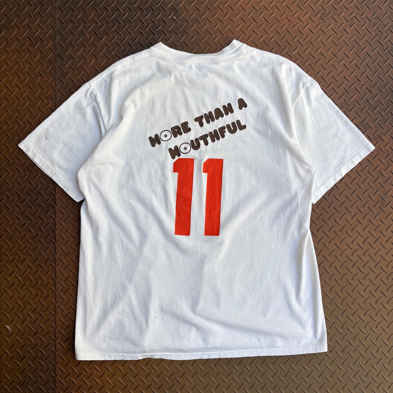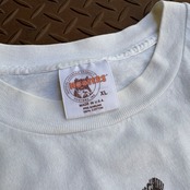 90年代頃のHOOTERSのTシャツになります。フーターズといえば、アメリカで人気のレストランです。綺麗なお姉さんが接客してくれるという男性客の多いお店です。古着界でも多く知れ渡っているこちらのTシャツです。こちらは白ボディのタイプで、他にも黒のものもございますので、気になる方は当ショップにも出品でご確認ください。バックプリントは様々あり、このTには「More than a mouthful」と書いており、Hootersのメニューにもある「モアザンアフーターズバーガー」から取っているものです。サッカーユニフォーム的なデザインがユーモアあって、さすがアメリカの企業っぽいなと思います。お好きな方は是非。