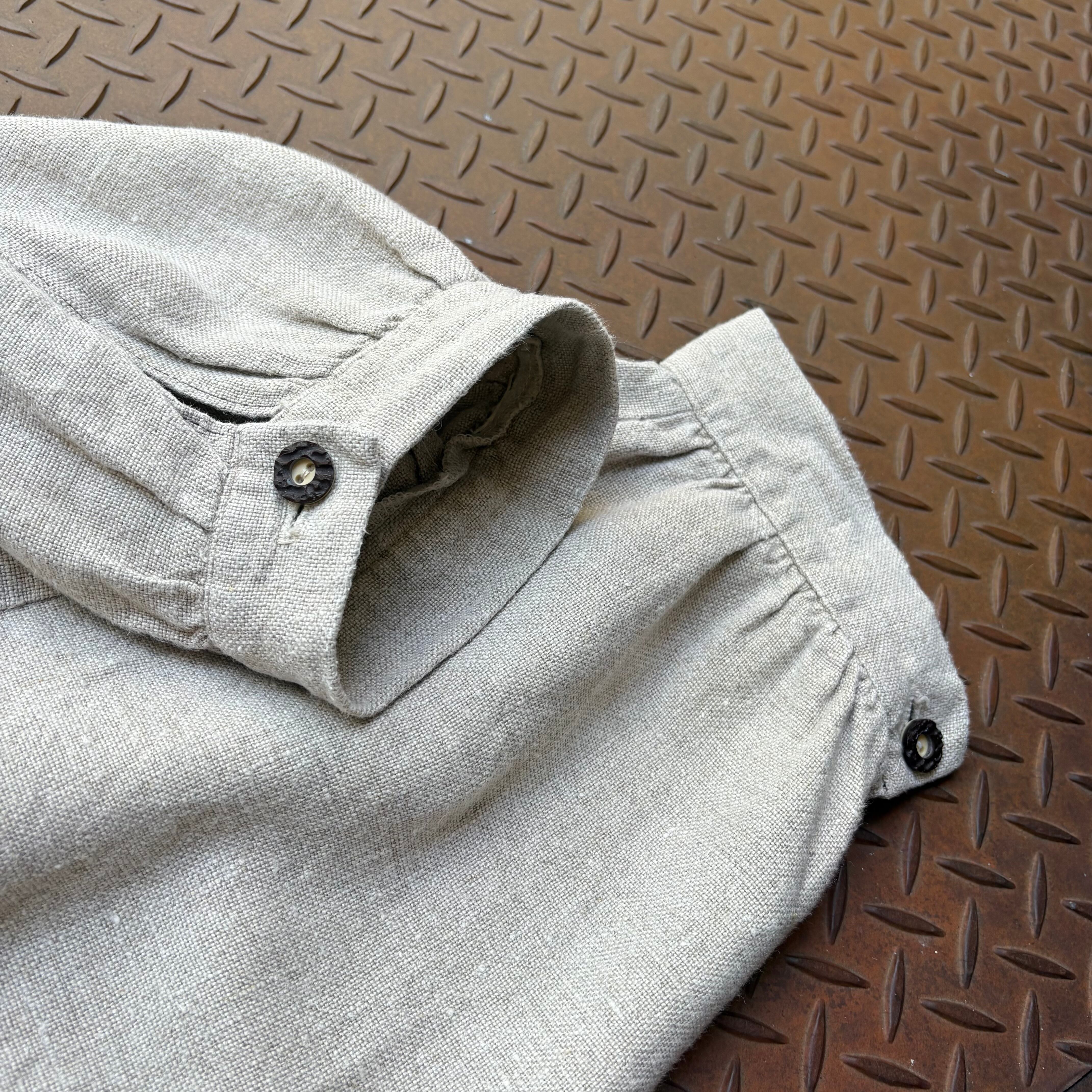 80年代から90年代頃のチロリアンパンツです。チロリアンと聞くと、シャツの方がイメージにありますが、パンツもございました。チロリアンらしいボタンや、コットンリネンの素材感、一風変わった感じが存在感を放っています。裾もボタンで止められる仕様になっており、お好みでシルエットを変えることができる優れものです。また、股のボタンは飾りボタンになっており、裏にジップが付いている仕様です。なんかおもろいスタイリングが期待できそう、、変わり種好きは是非。
