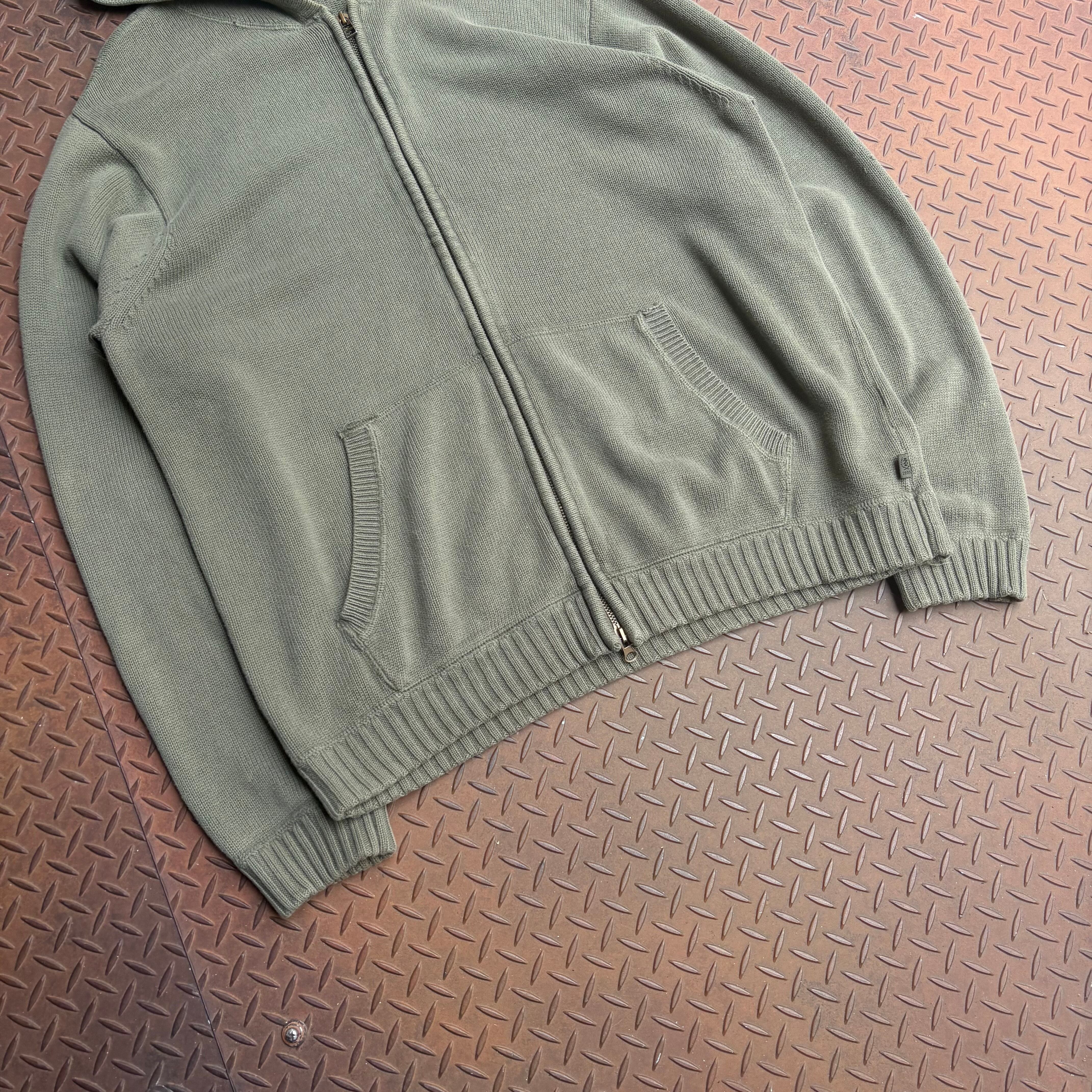 00s IZODコットンニット パーカー ダブルジップ エルボーパッチ ラコステ