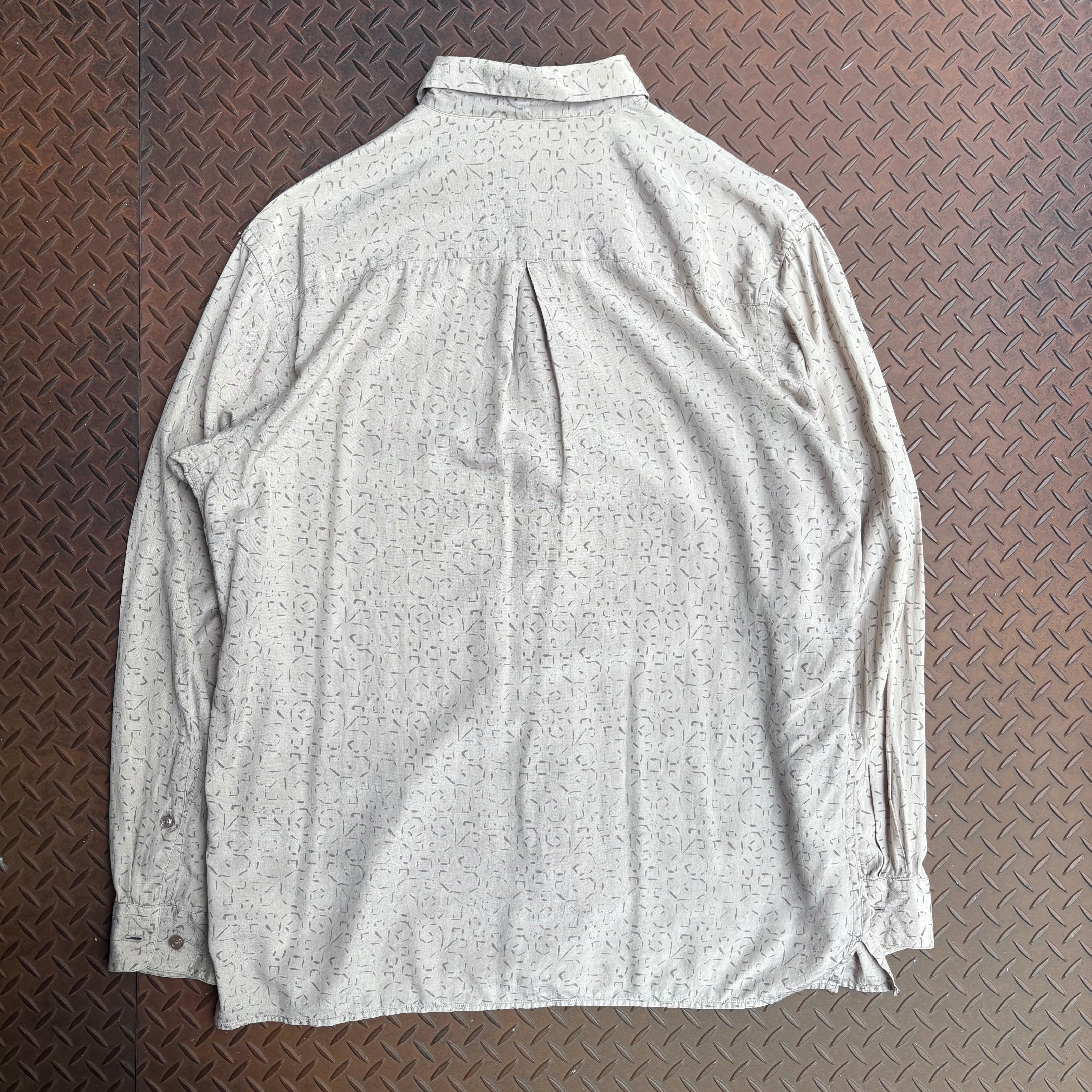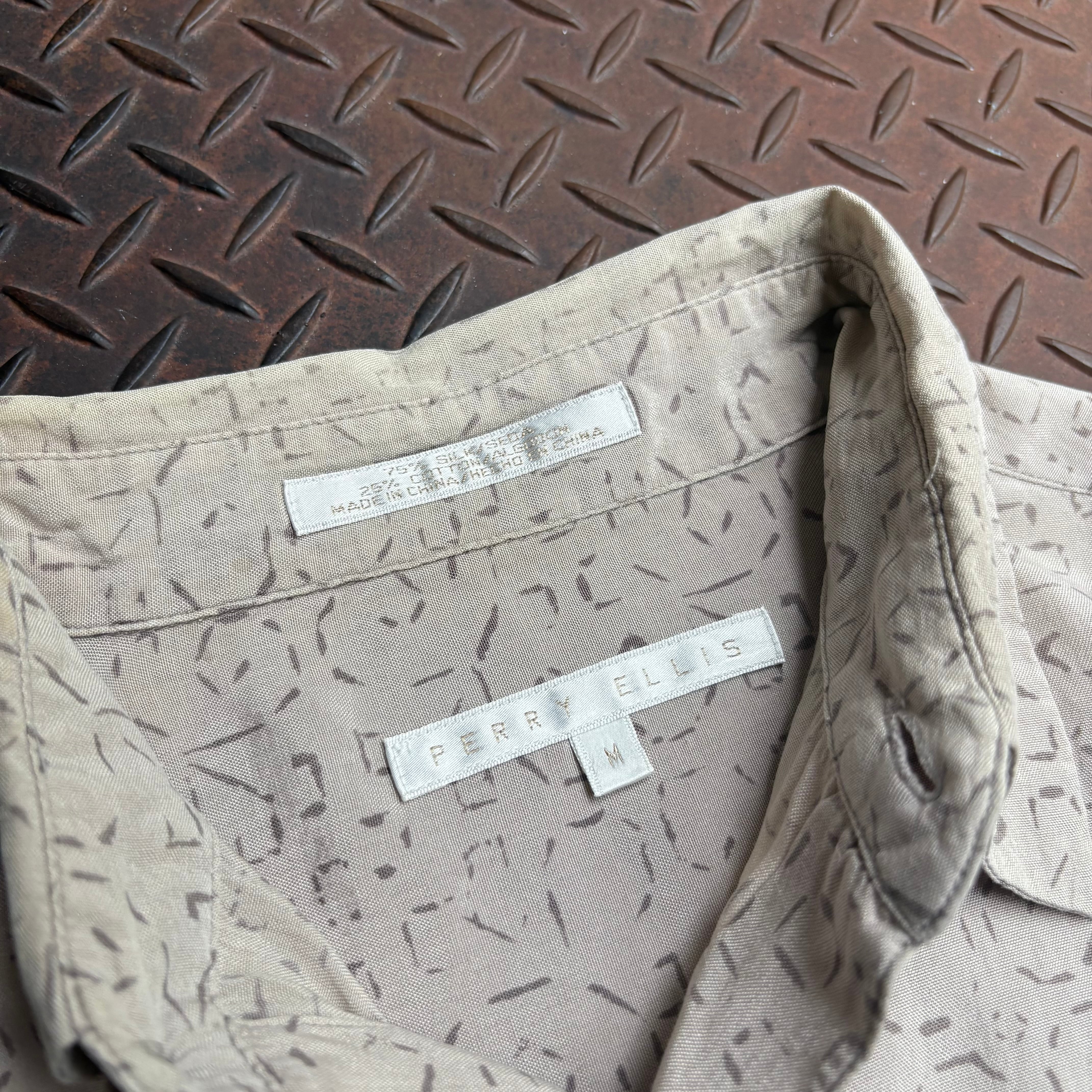 90s Perry Ellis ペリエリ シルクシャツ 総柄 長袖 オールオーバーパターン