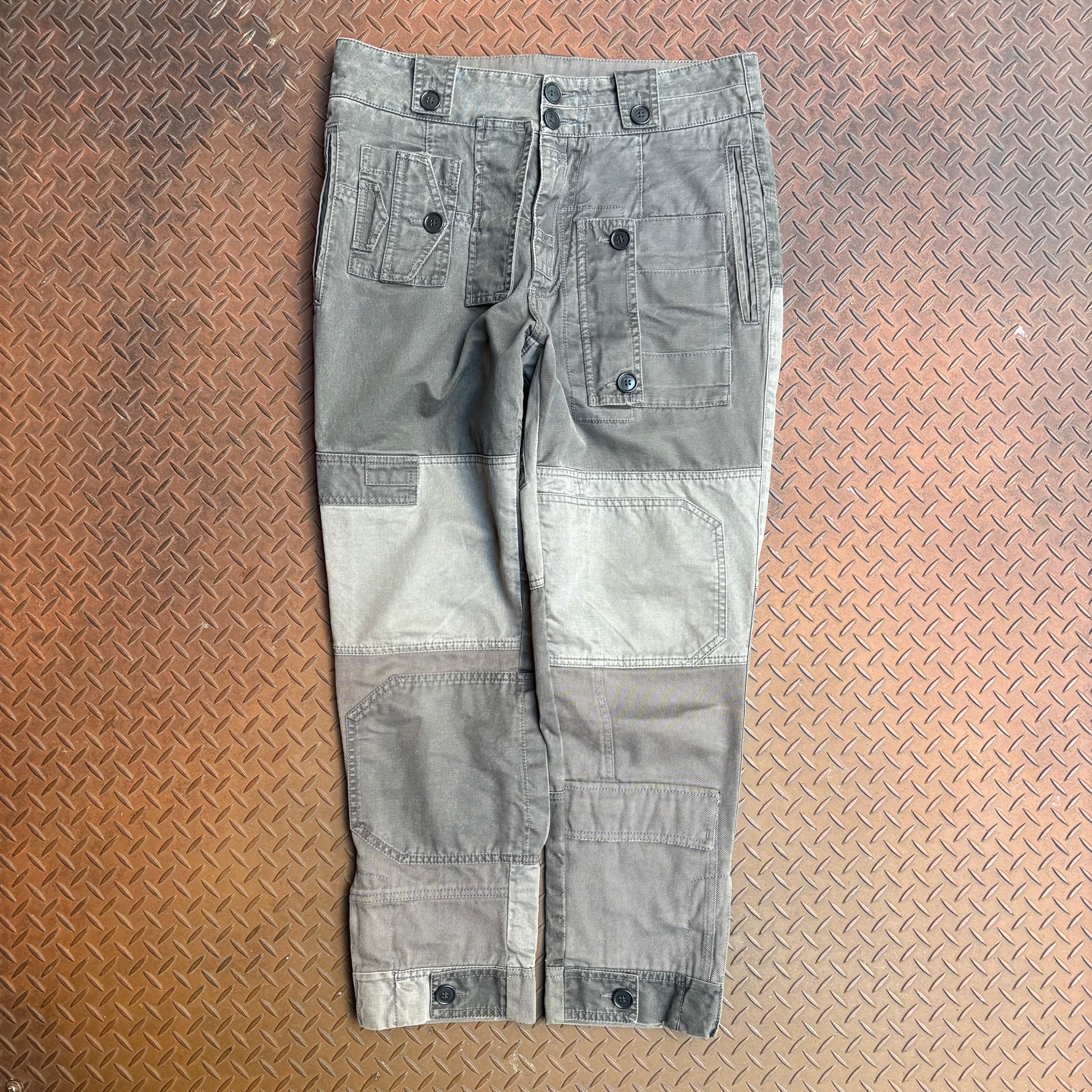 00年代のDolce&Gabbanaのマルチポケットカーゴパンツになります。ドレスなアイテムが多いブランドですが、Y2Kらしいデザインが目立つパンツ。パッチワークのような布の切り替えと多数のポケットでミリタリーサンプリングを感じます。裾に行くにつれてテーパードがかかっており、ブーツが映えるデザイン。細身のパンツの流れがきている今、ちょうど手を出しやすいシルエットなのではないでしょうか。
