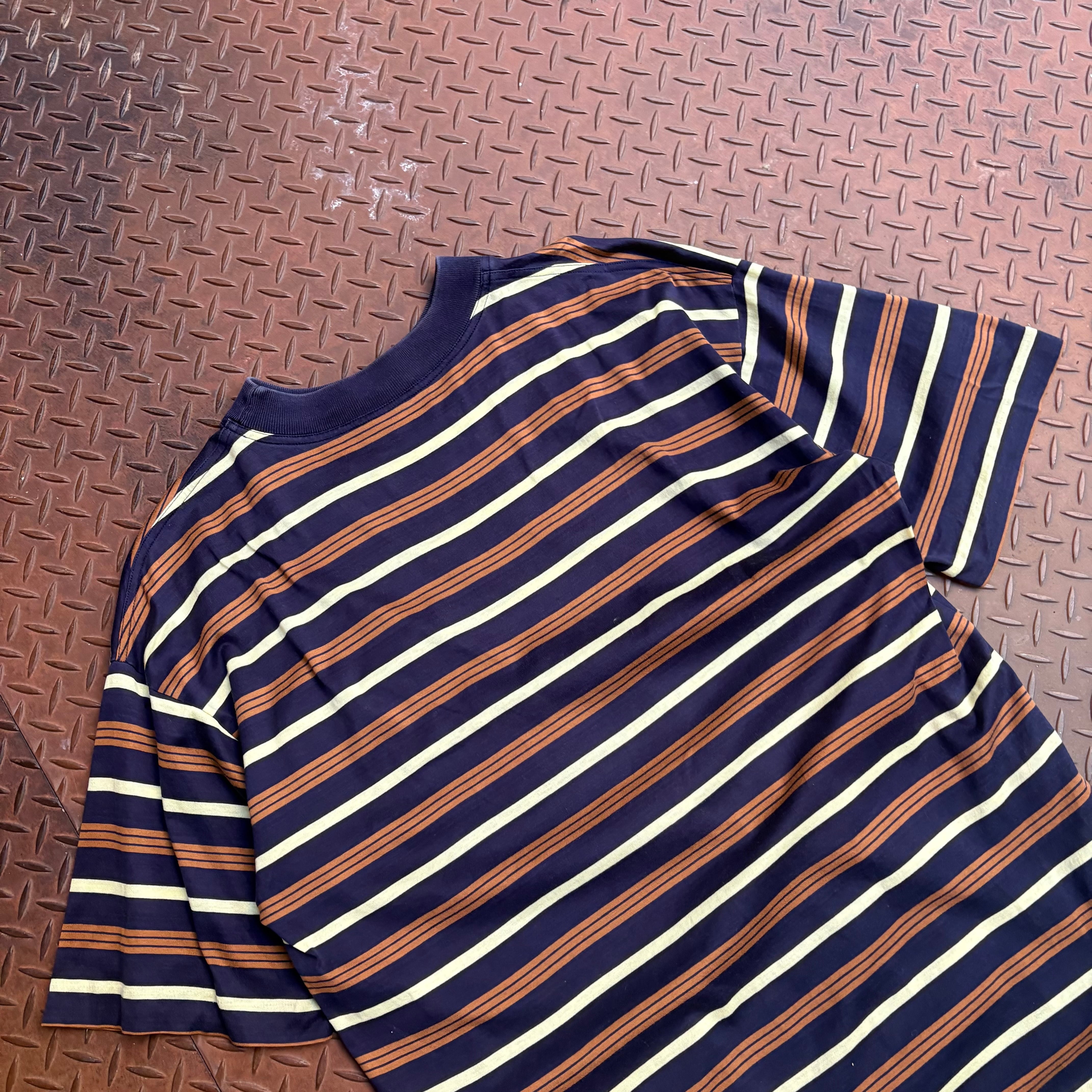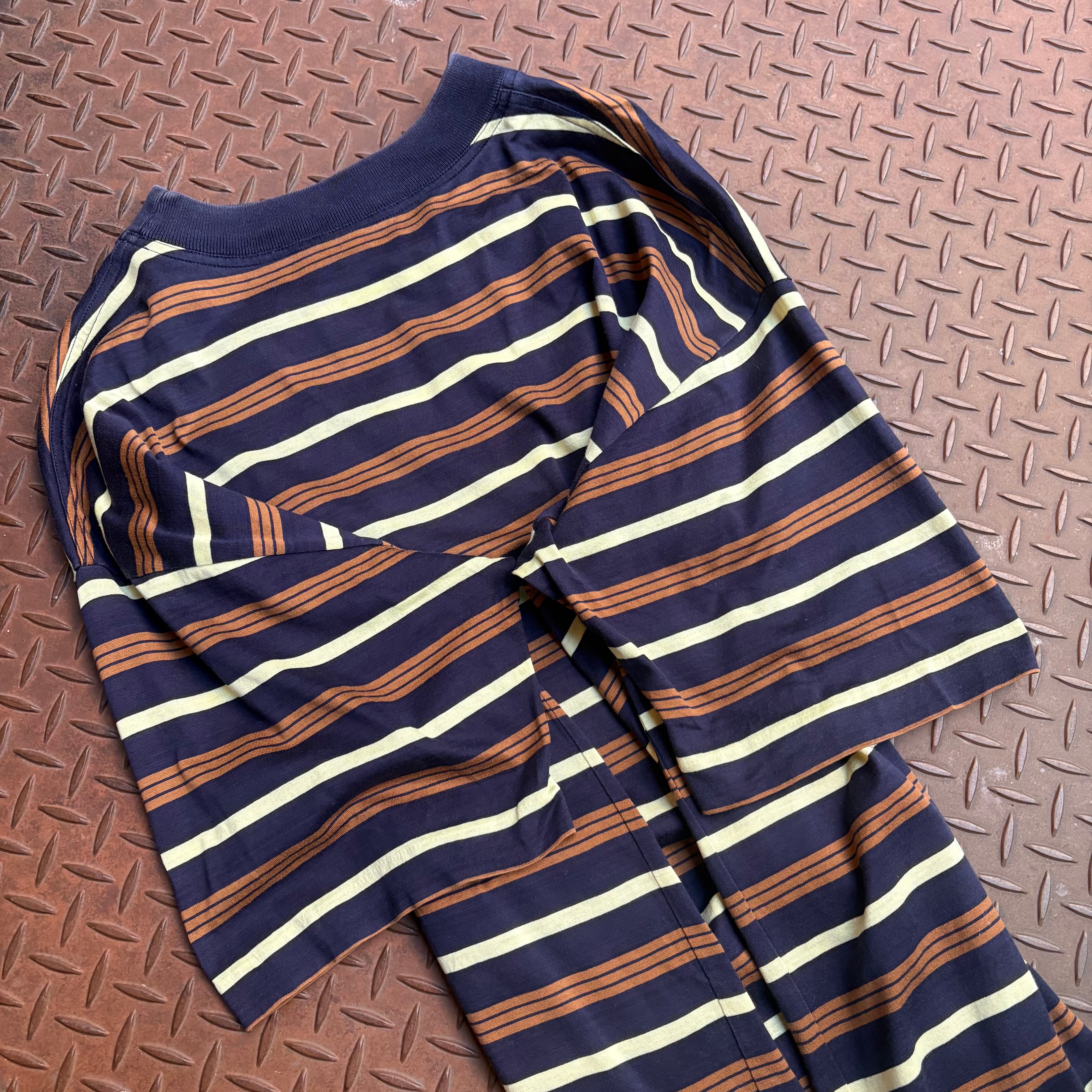 90年代頃のHERMESのボーダーTシャツになります。少し古めのタグがつくものでシングルステッチのイタリア製。ラグジュアリーブランドならではの仕様となっております。配色のバランスが良く、いかにもエルメスな色合いで、一枚で十分映える一着です。コットンの質感もピマコットンのような滑らかな手触りで、着心地は間違い無いでしょう。