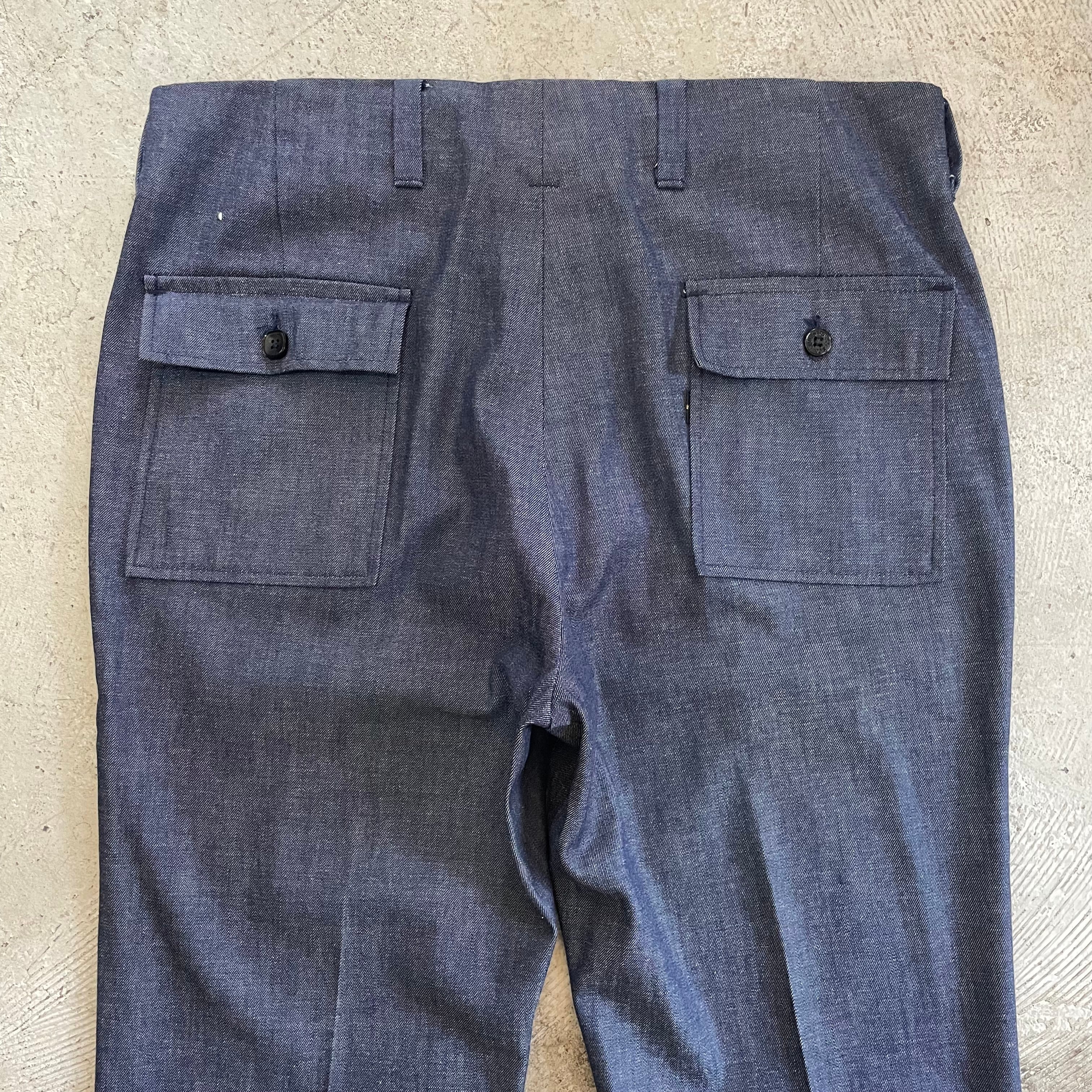 シャンブレー織りのブッシュパンツと、よくある柄ではなく形が珍しいといった、他とは一線を画す希少な一本。
