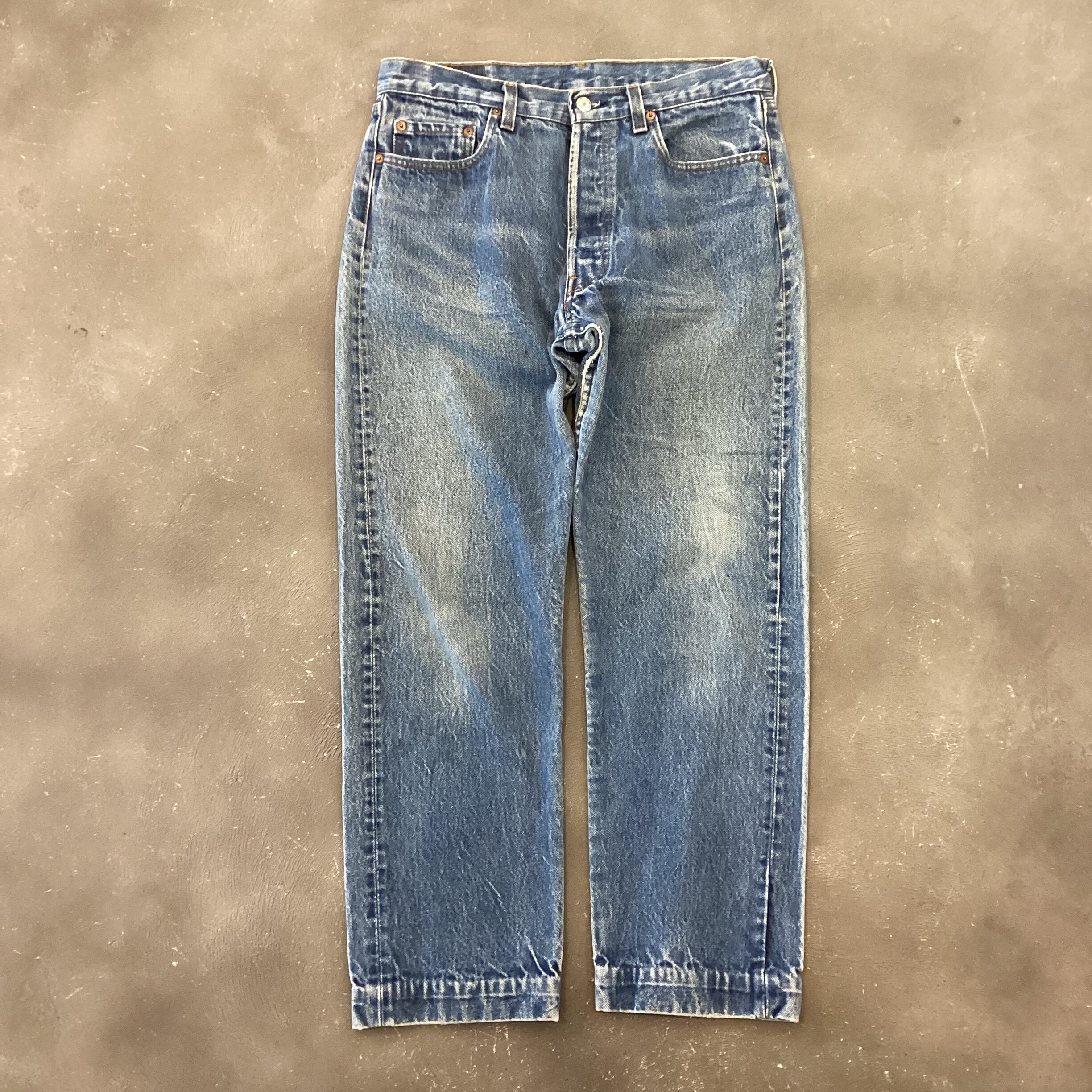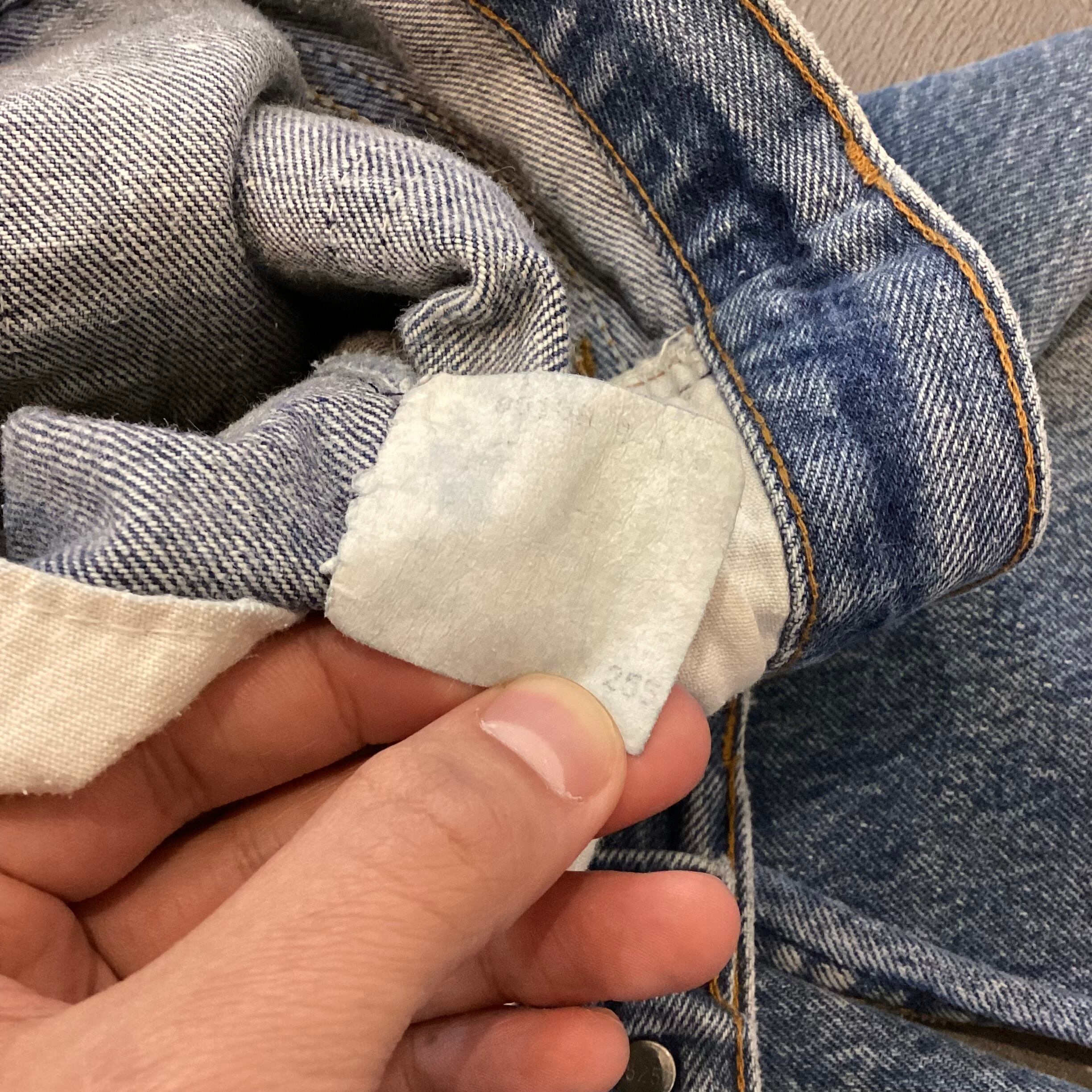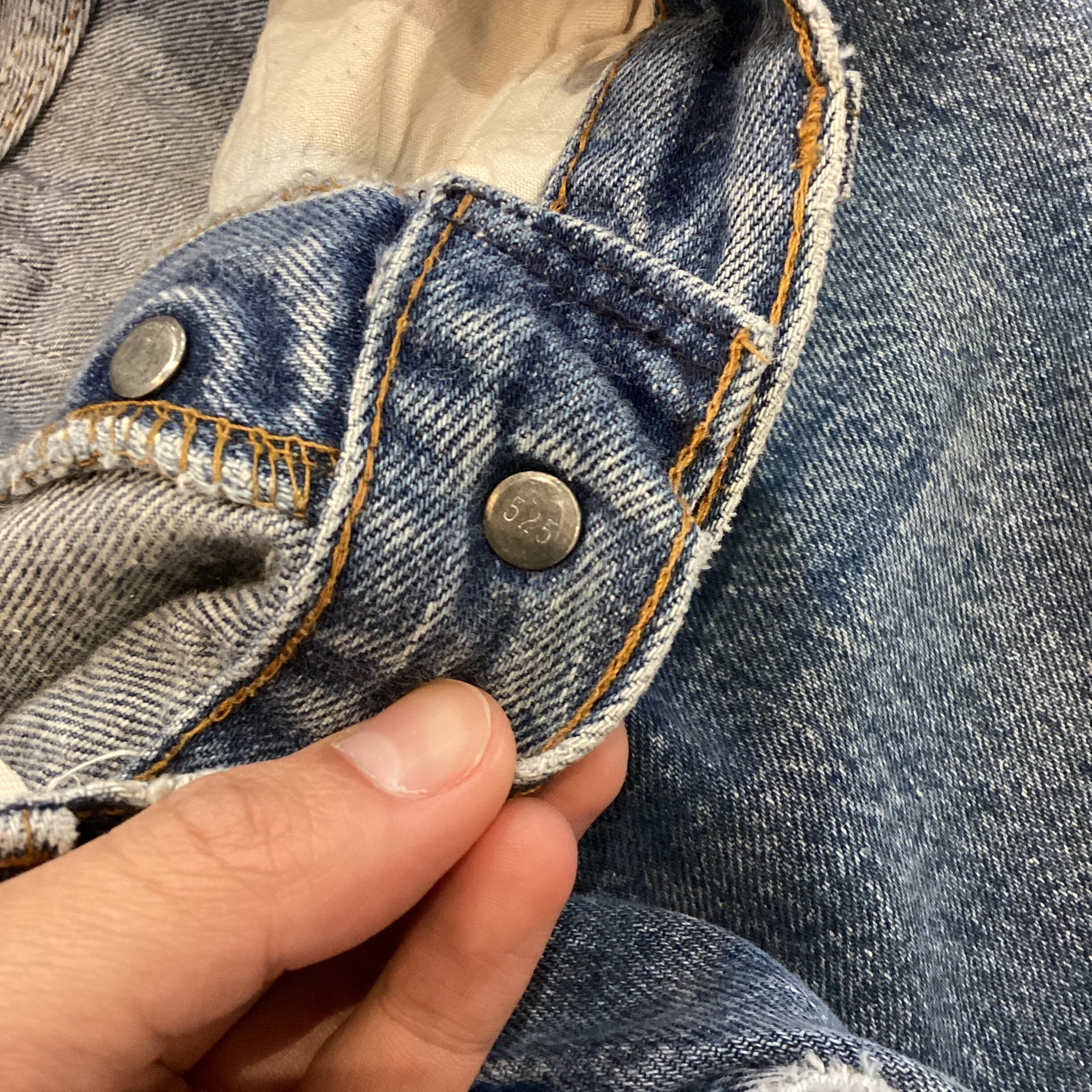 80年代頃のリーバイス、Lot501、デニムストレートパンツになります。裾上げが独特ですね。それでええサイズなってます。これがええんです。当時使っていた方の背景が垣間見えますね。この人で言うと裾上げ正直めんどくさかったけど、しないとやはり気が済まないから、ラフにあげてしまったってところですかね。アメリカらしいラフさでてます。それでいてしっかり履き込んで、ここまでの色落ちに持っていってるんですよね。結局ずっと気に入って履いてるっていう。所以ハチマルです。これもこれから高くなりそうですね。