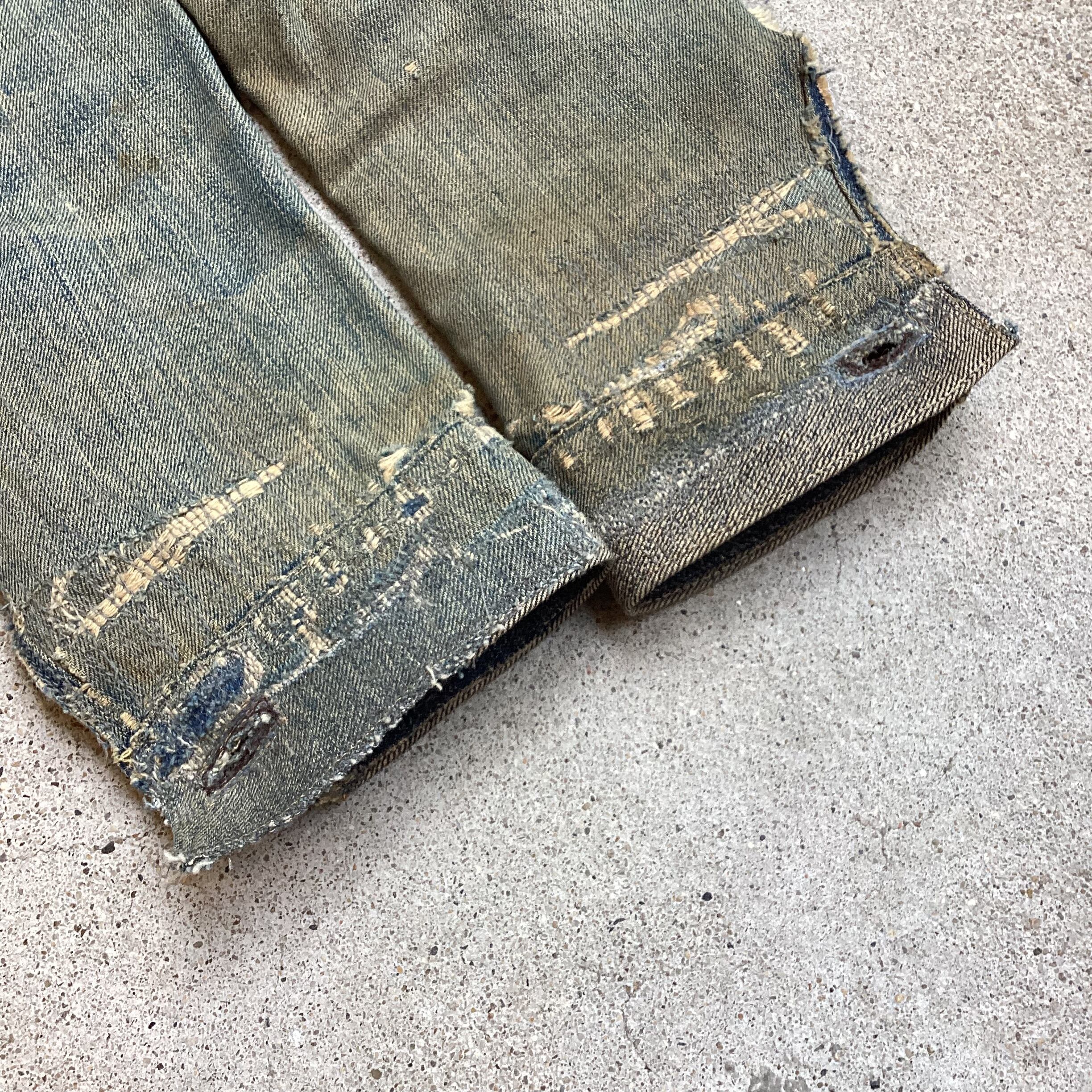 画像の通り、ヴィンテージ特有のダメージ、リペアが見られます。古着、ヴィンテージ慣れしておられる方でしたらアジとして捉えていただき、問題なく着用できる範囲かと思います。