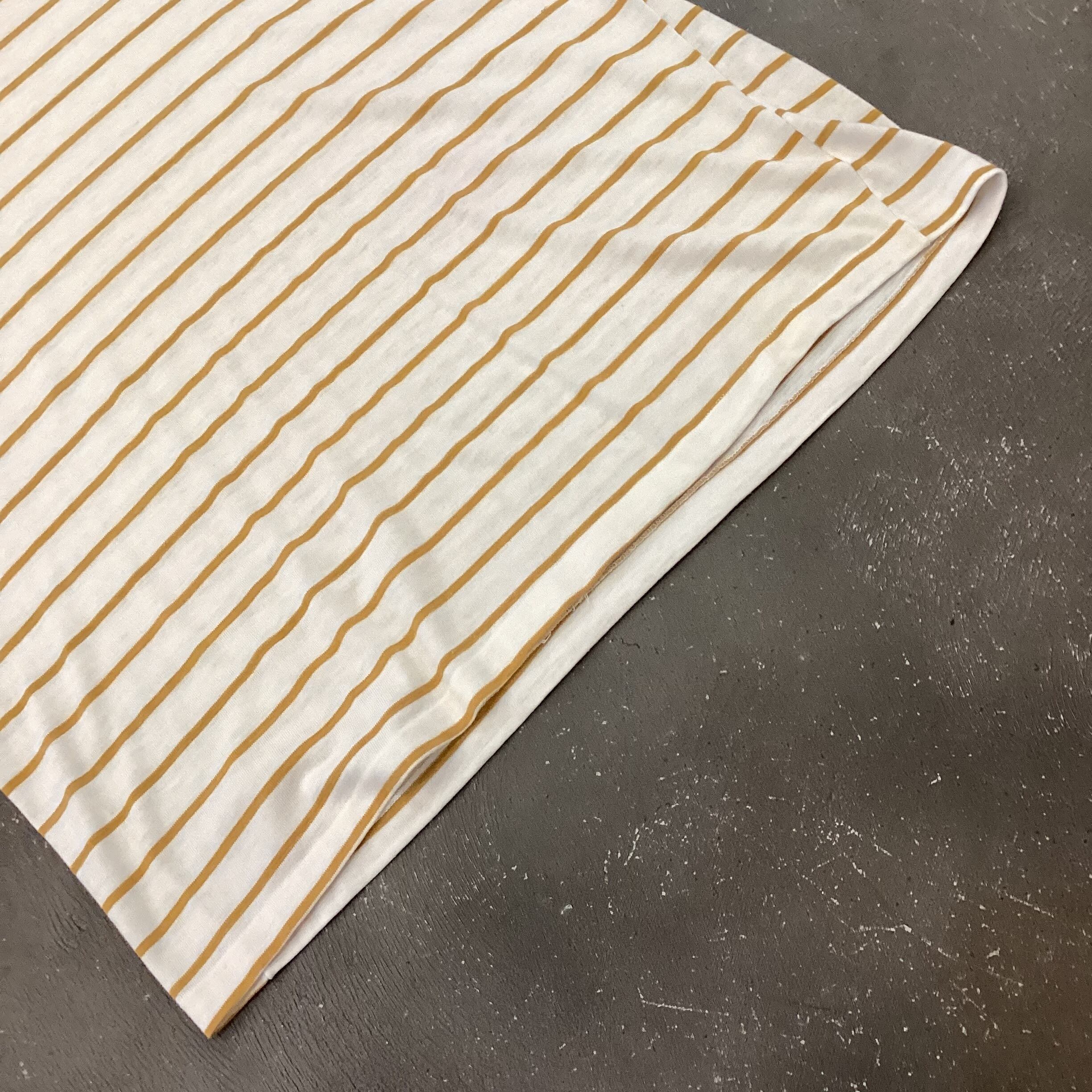 70-80年代頃のVネック、ボーダーTシャツになります。ゆるいボーダーではなくしっかり詰まったVネックなので、着用感はちょっと洒落たヴィジュアルになるかと。首は詰まってるけどクルーじゃなくてVやん、みたいなちょっとしたことなんですけどそれがオシャレなんかなと思います。そしてサイズもこの年代では珍しいXL以上のサイズ感。ゆったり目で着用できるのは嬉しいですね。
