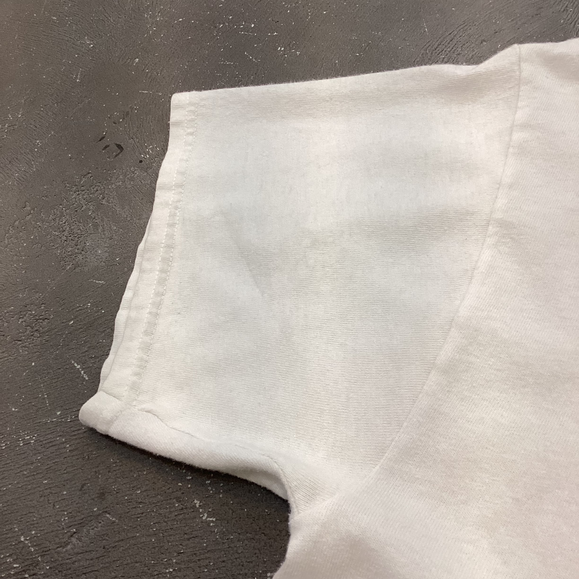 恐らく00年代頃のアメリカで2番目に大きいフィットネスチェーン企業である、24 HOURS FITNESSのプリントTシャツになります。しかし、全世界のフィットネス企業の中でナンバーワンやと思うものがあります。それはTシャツのプリントセンスです。フロントはシンプルに企業ロゴのパイプリ(胸プリントをパイプリと言います。)ですが、バックのプリントに注目して下さい。この24 hours fitnessの名にちなんだプリントになっているのですが、こっからは私個人の捉え方です。人間には1日24時間しかありません。これはどんなお金持ちでも、どんな人にも平等に与えられているものです。その中でいろんなことができますよね。仕事に遊びに、いろんなことにチャレンジしたり、自分の人生をどうするべきか。その答えが赤くプリントされている部分で“you24”なんです。結局最後はあなた次第なんです。何をするかは自由なんです。ただ何かあなたが成功したかったり、何か目標を達成したければジムに来て汗を流してみてはいかがですが、運動を習慣にして成功の糧にしてみませんか、と言うようなニュアンス、メッセージ性のある良いTシャツやと思います。どう汲み取るかはあなた次第です。