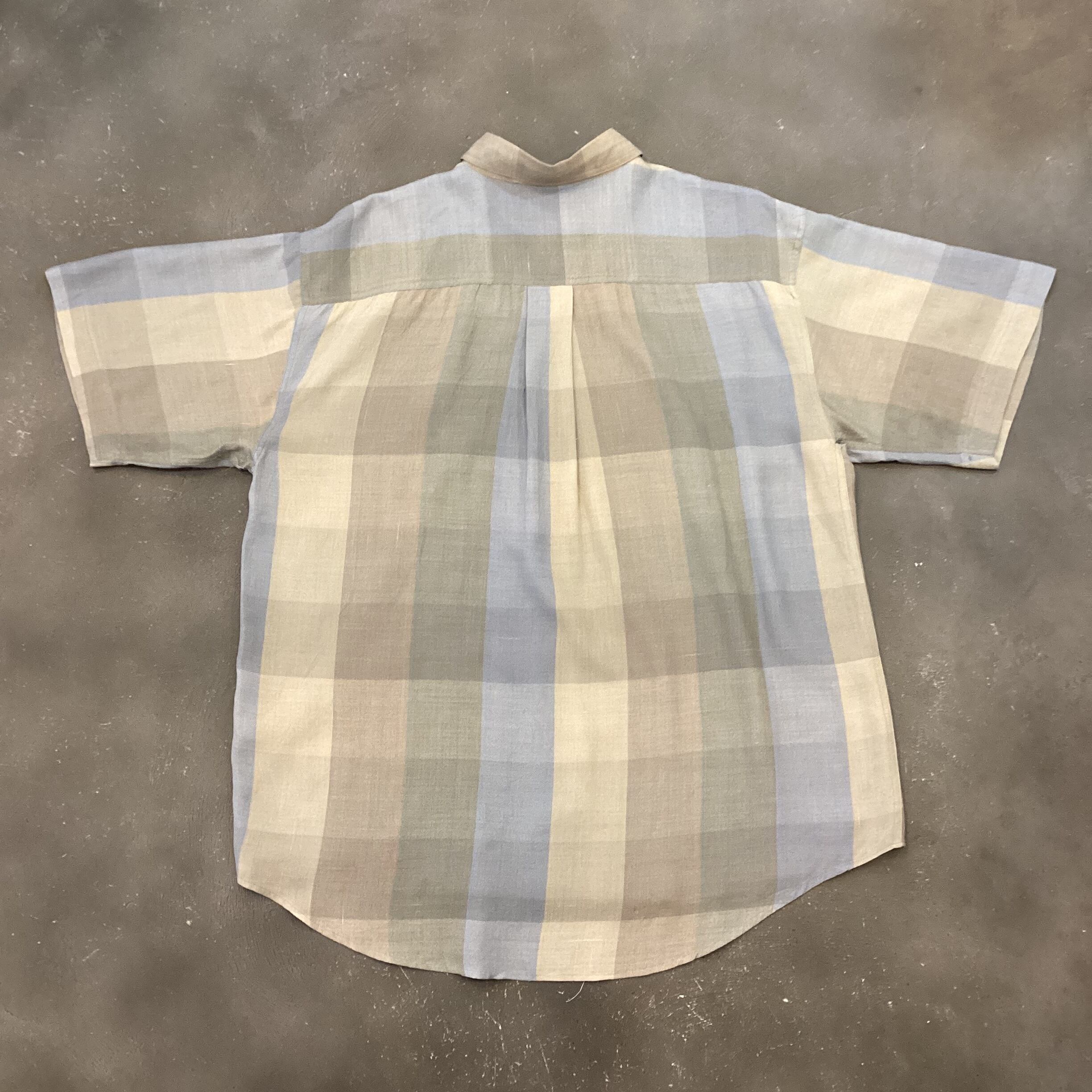 “DEAD STOCK” 90s GOOUCH グーチ シルク リネン ブロックチェック 半袖シャツ “グッドカラー”