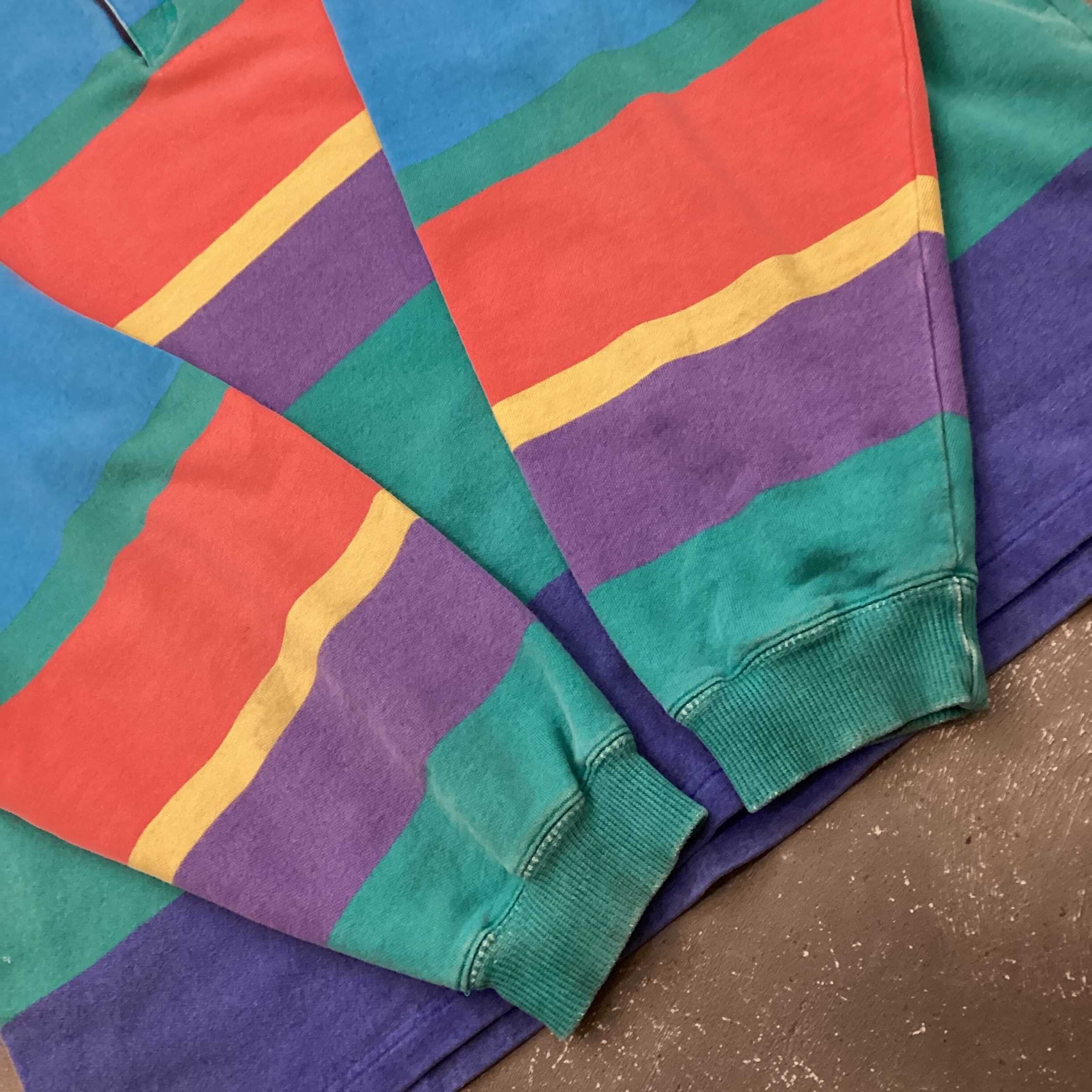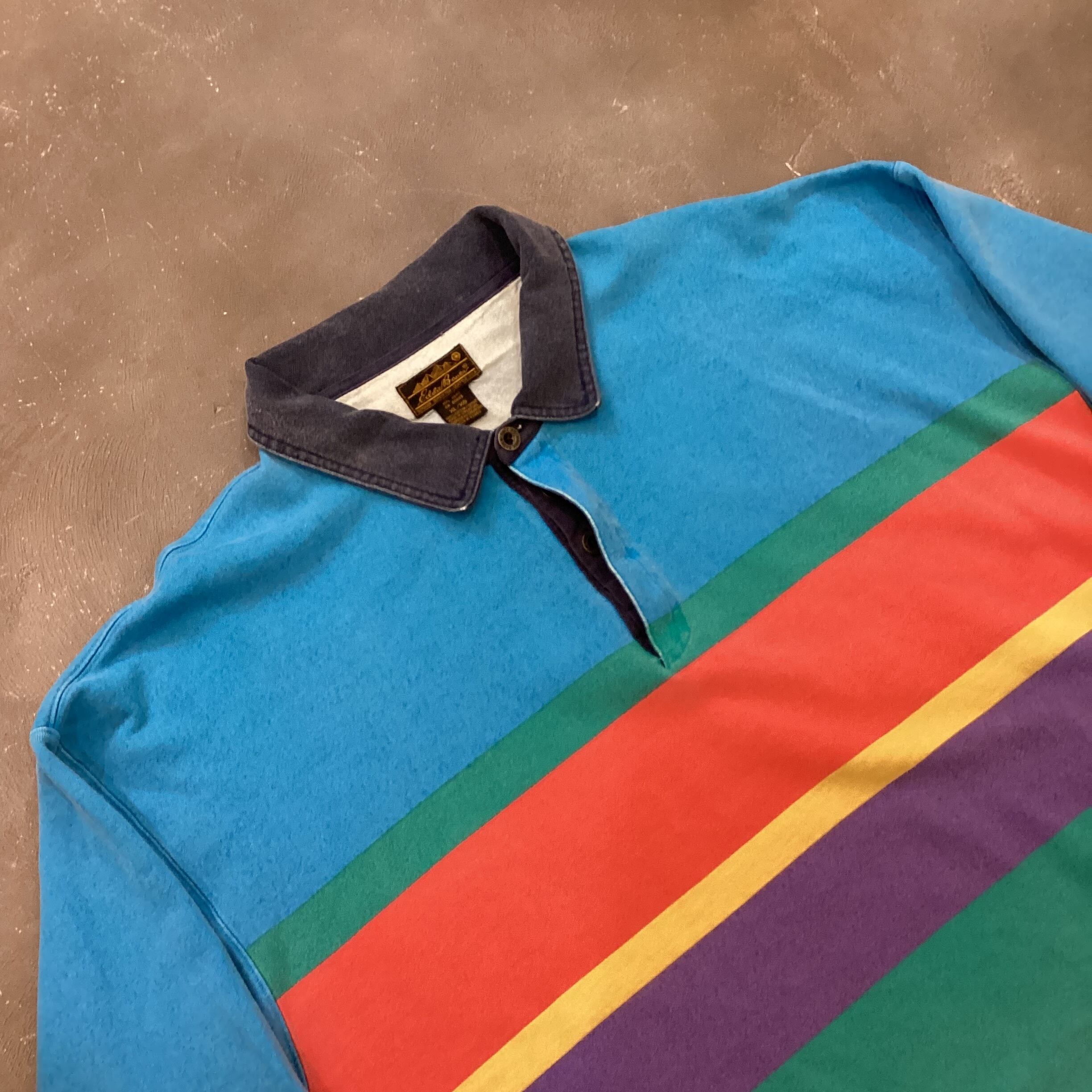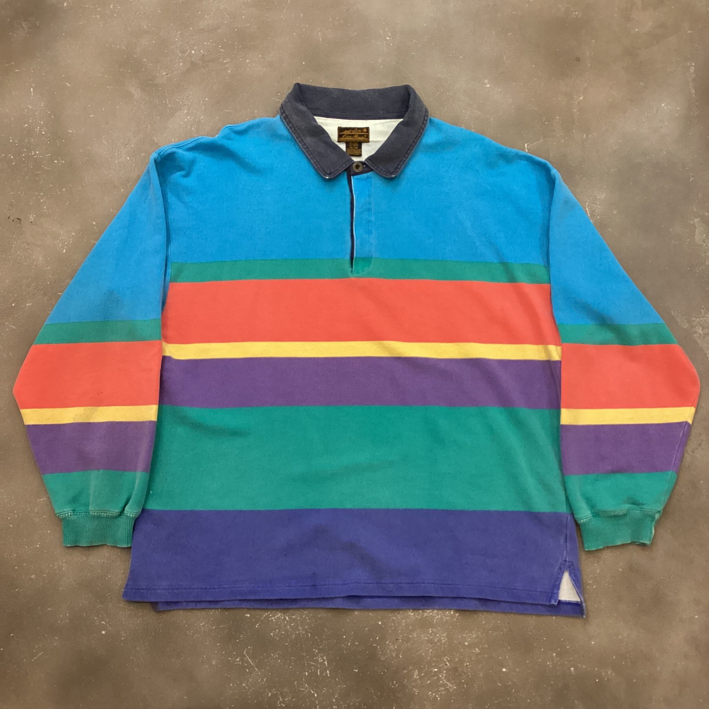 これも良いエディーバウアーですね。黒金タグ、太めのマルチボーダー、比翼式のポロタイプ、スウェットとカットソーの間のような生地感。最後にサイズXLと、何もいうことないですね。1枚でスラックスなんかとサラッと合わせてください。お好きな方是非。
