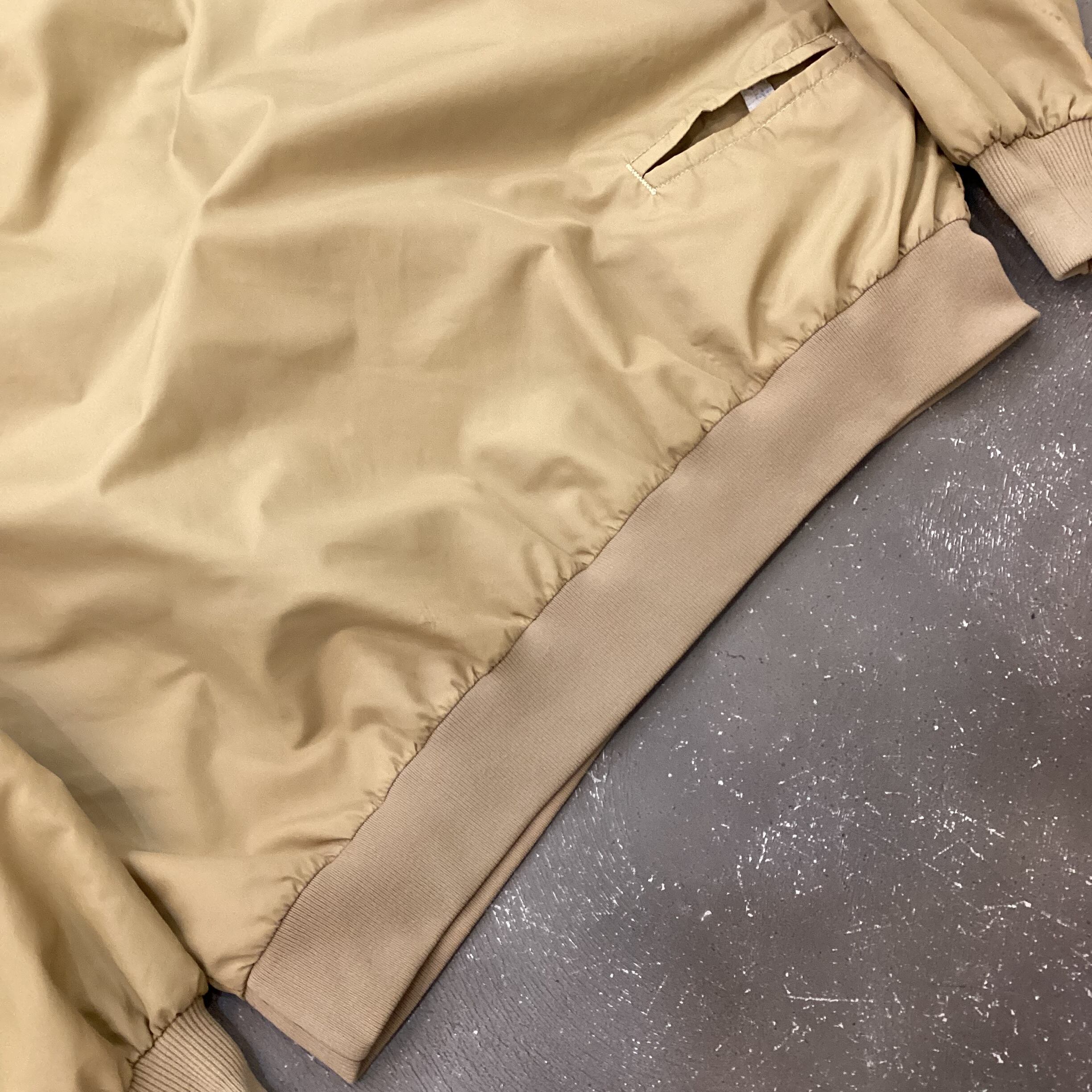ロングネック仕様に訳のわからない、なけなし程度のバックポケットが面白い1着。ラグランで肩幅はそこまで気にする必要のない形。そして何よりこのないですね。間違いなく70年代でこんなサイズに出会うことはまずないですから。かなり稀やと思います。XXLなんて70sで見たことあります?少なくとも僕は初見でした。カラーも使いやすいベージュでもちろんロケットタロンがつきます。お早めにどうぞ。