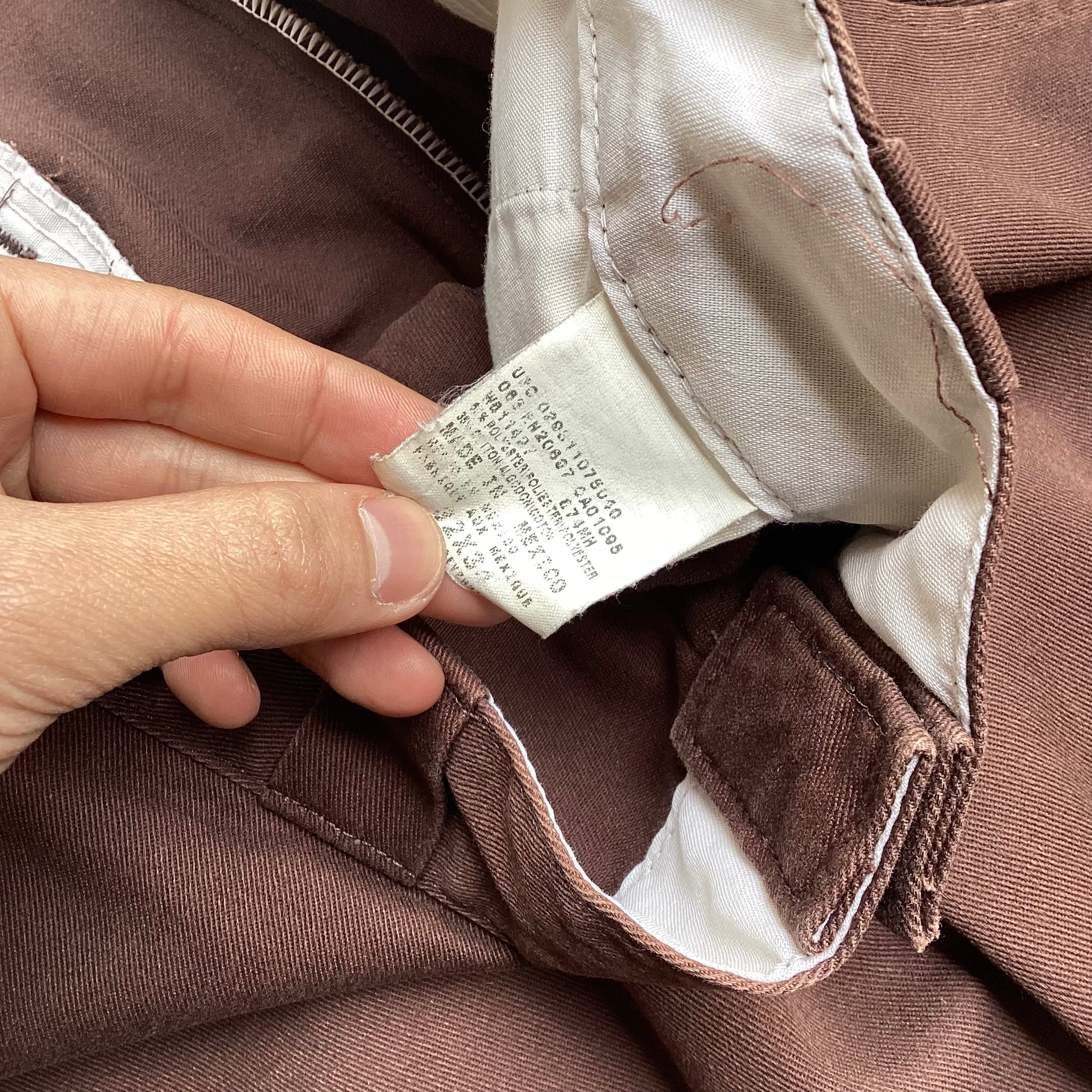メキシコ製の874。ええ色ですね。これもよく使われていたんでしょう。褪色、フェード感がとても良いです。ブラウンなんでしょうけど、明るめのブラウンになってますね。レングスはあげられていますが、そのおかげで完全にゴールデンサイズに仕上がってます。綺麗めな白シャツ羽織って、ロールアップして、ローファーでええんやないでしょうか。ディッキーズはやっぱりこれぐらいで履きたいです。