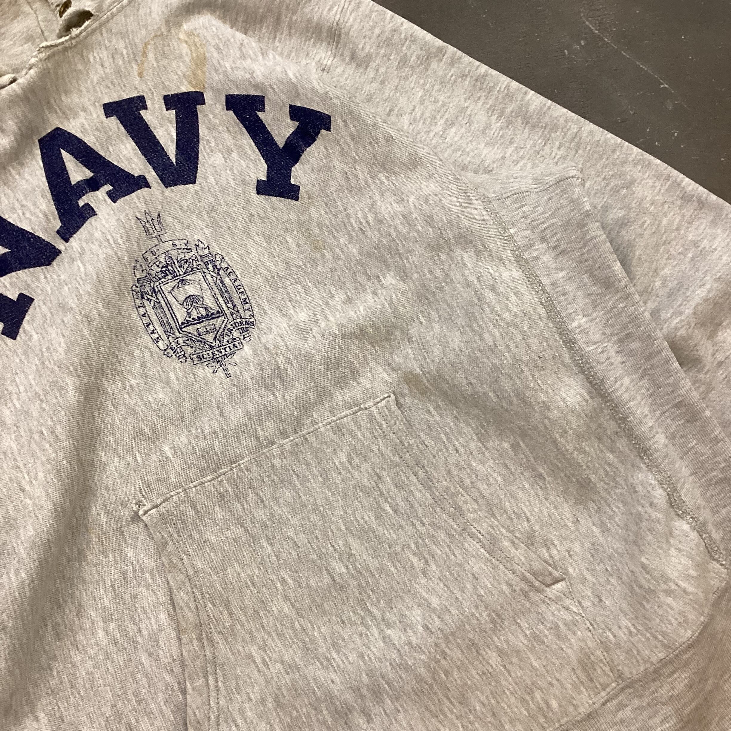 80s Champion リヴァースウィーヴ スウェット フーディー “NAVY” ボロ 雰囲気抜群 プリントタグ LARGE ハトメ