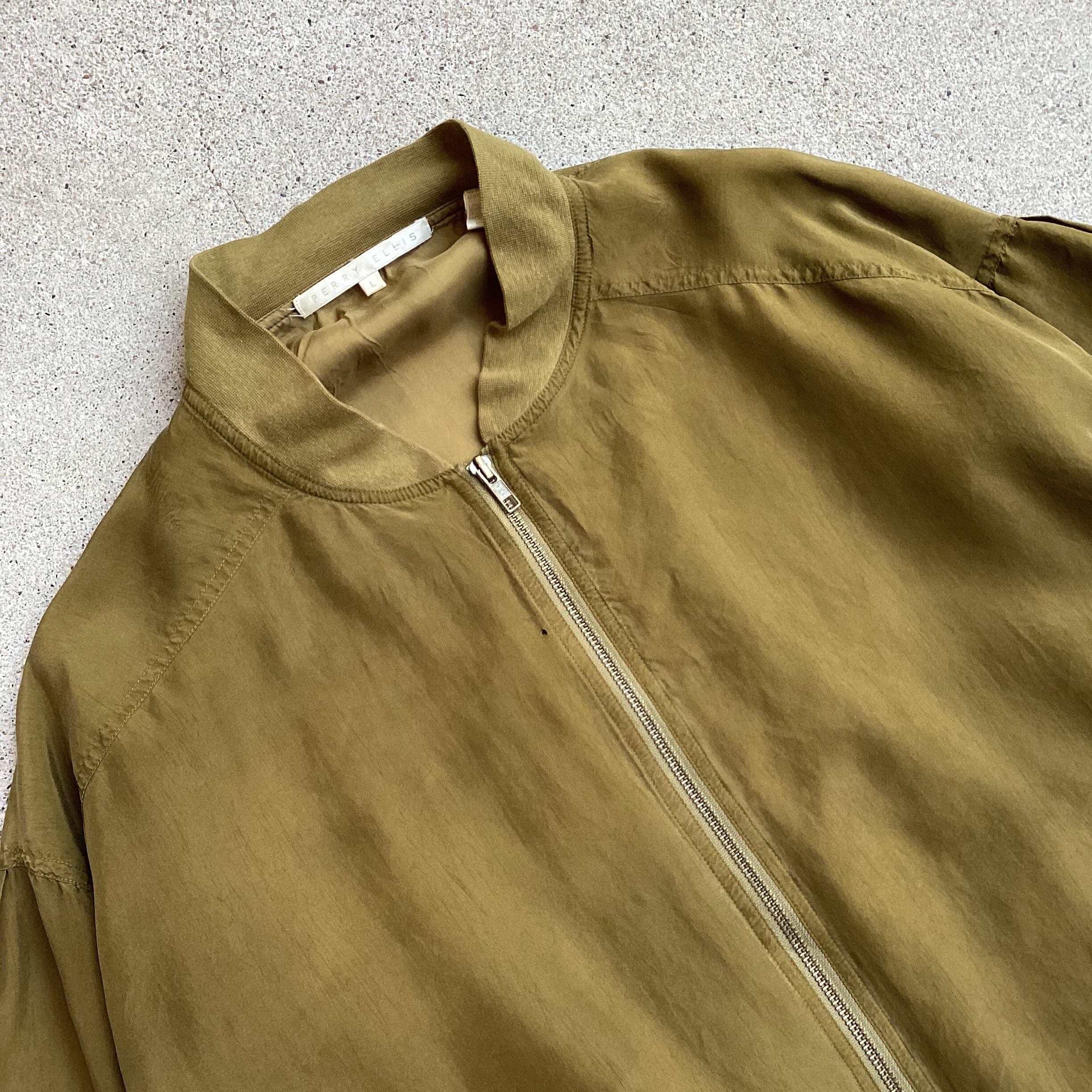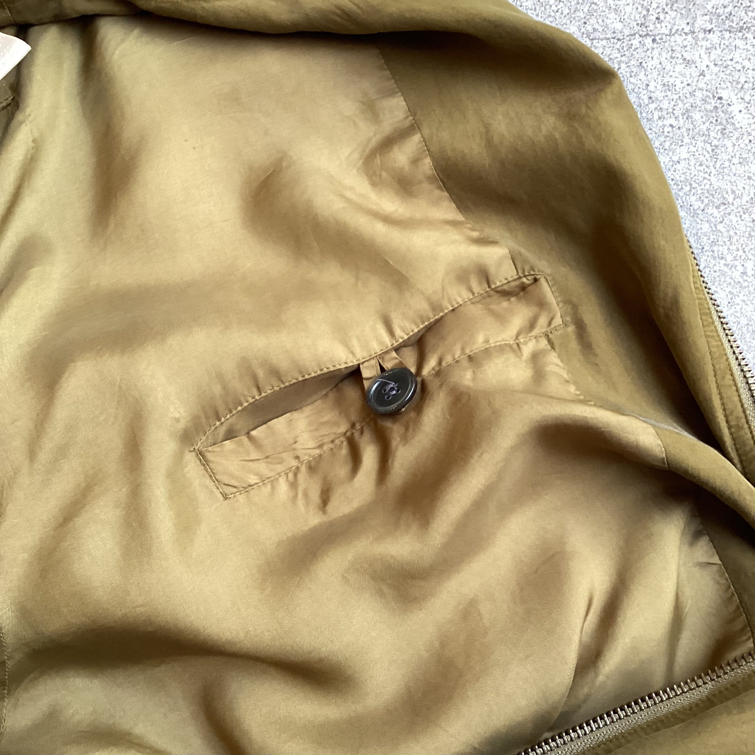 ペリーエリスのシルクブルゾン。かなりデザイン凝ってます。バックのアクションプリーツ然り、1番はシルエットですかね。特徴的な横長シルエット。ボックスはボックスでも横長長方形といったとところでしょうか。さすがですね。ブランド背景、デザイナー等々面白いんですよこのブランドは。是非色々調べてみてください。色も最高に良いですね。良く言えばゴールドオリーブ、シャイニーオリーブと言ったところでしょうか。