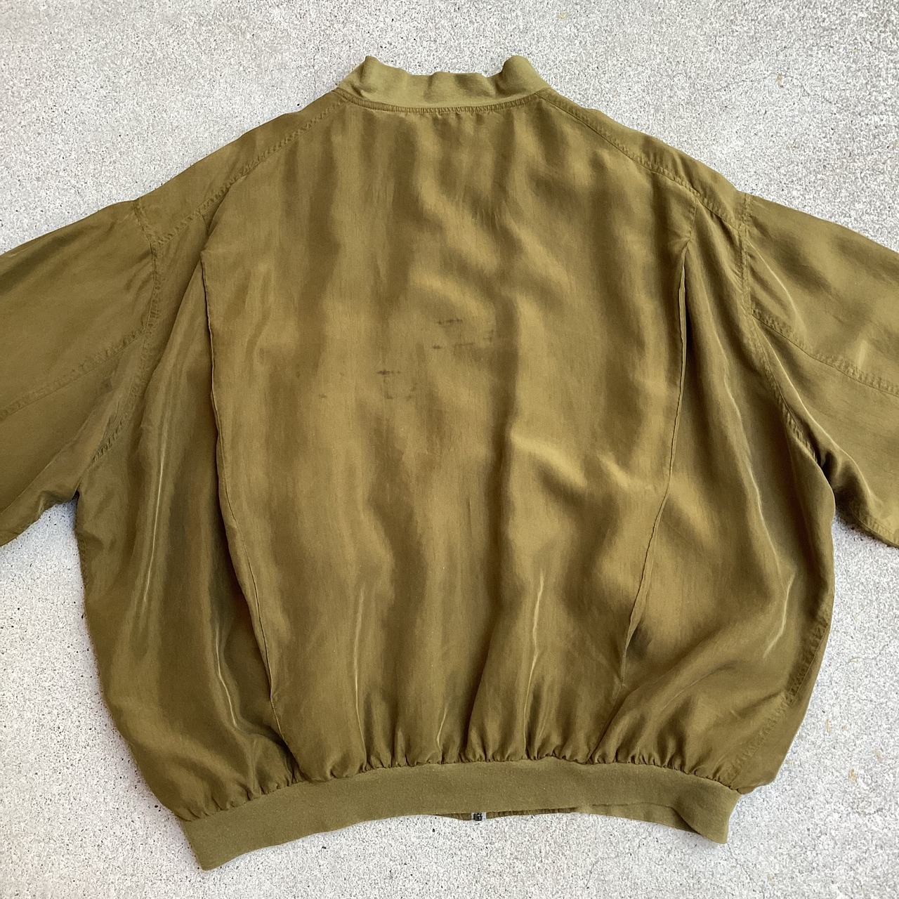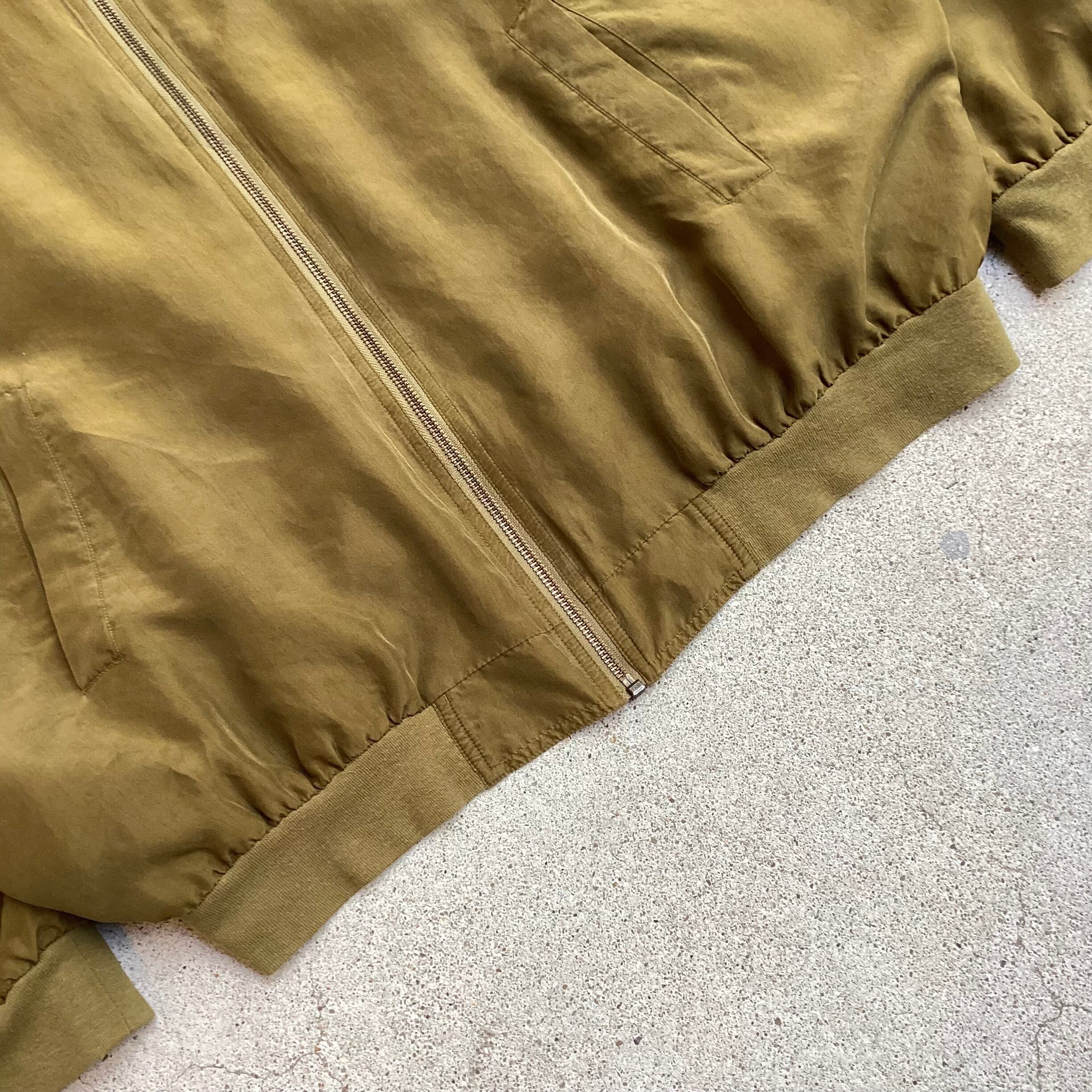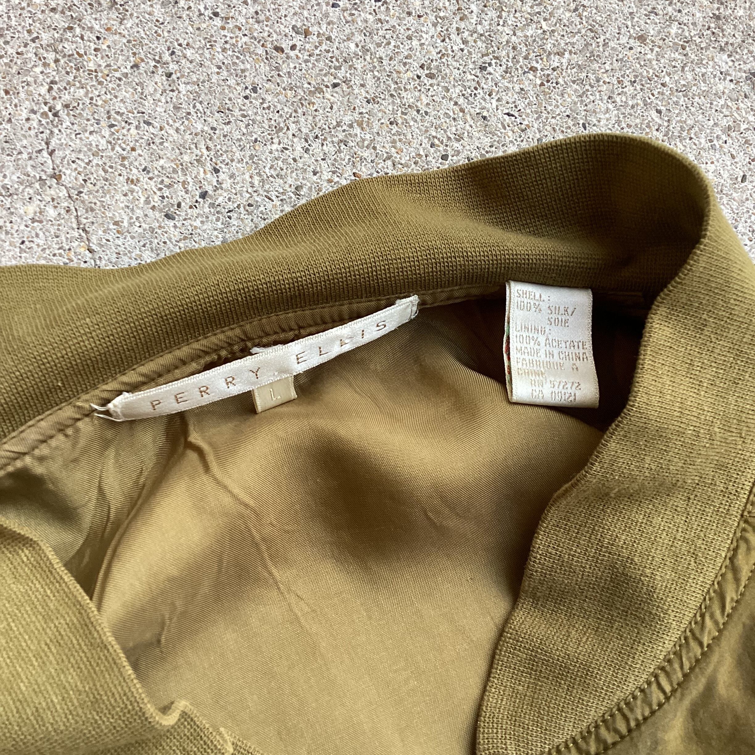 90s PerryEllis ペリーエリス デザイン シルク ブルゾン ビックサイズ ボックス バックプリーツ アクションプリーツ シャイニーオリーブ ゴールドオリーブ