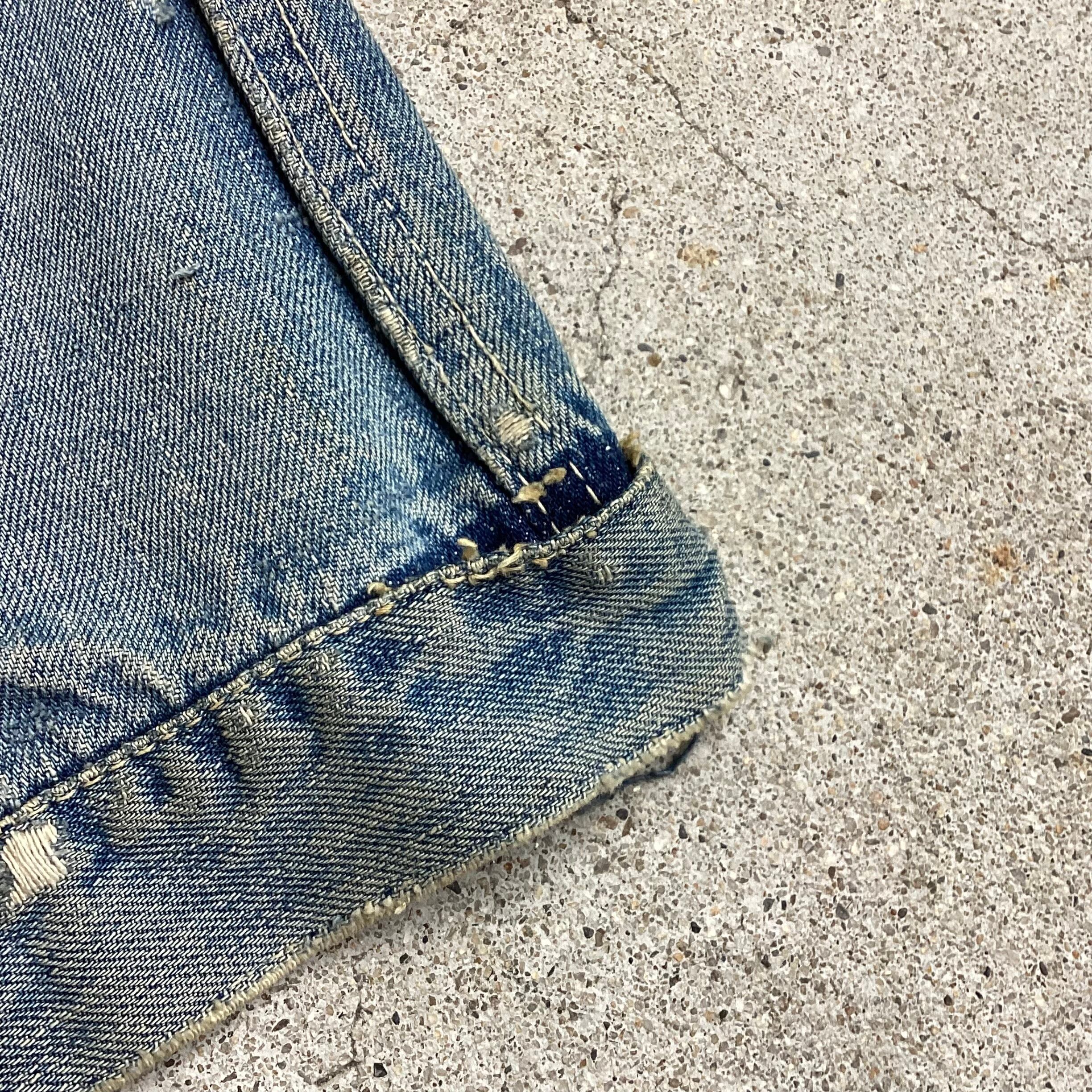 ボロ好き、サイズ合う方に是非。これで20万なら良いなと思います。今ではこの値段でも安いといわれる時代。高くなりすぎましたね。ファッションをしましょう。最高にファッションできる個体やと思います。多少は伸びます。170cm 58kg細身体型でゆったり目のTシャツを下に入れても全然着れます。是非ご検討ください。