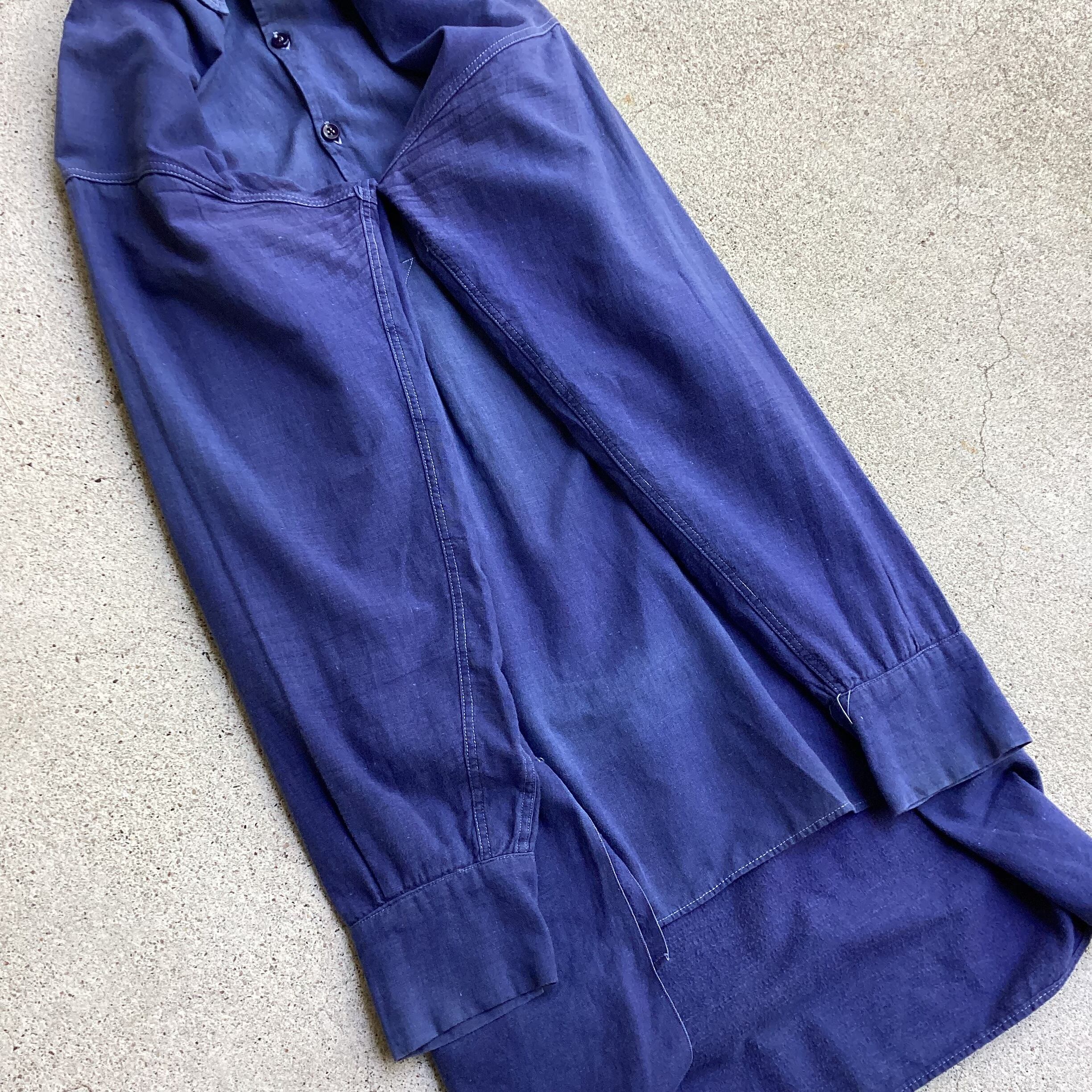 EURO VINTAGE ~60s All Cotton Indigo Grand Pa Shirt Pullover Shirt Good Aging Good Fade SIZE41 60年代 コットン インディゴ グランパ シャツ 雰囲気抜群