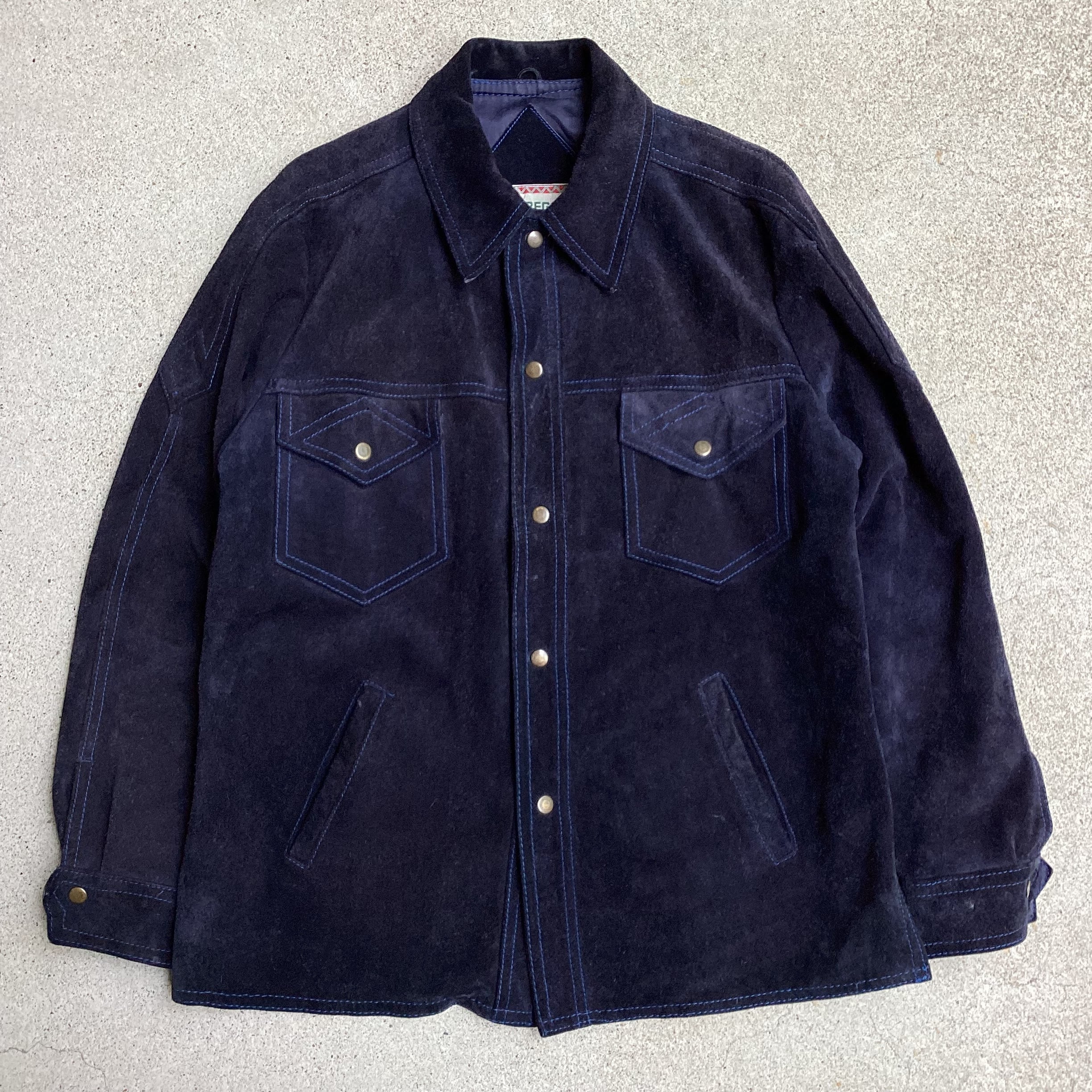 70s McGREGOR スウェード レザー シャツジャケット ブラジル製 ネイビー 44 レアカラー ビックサイズ