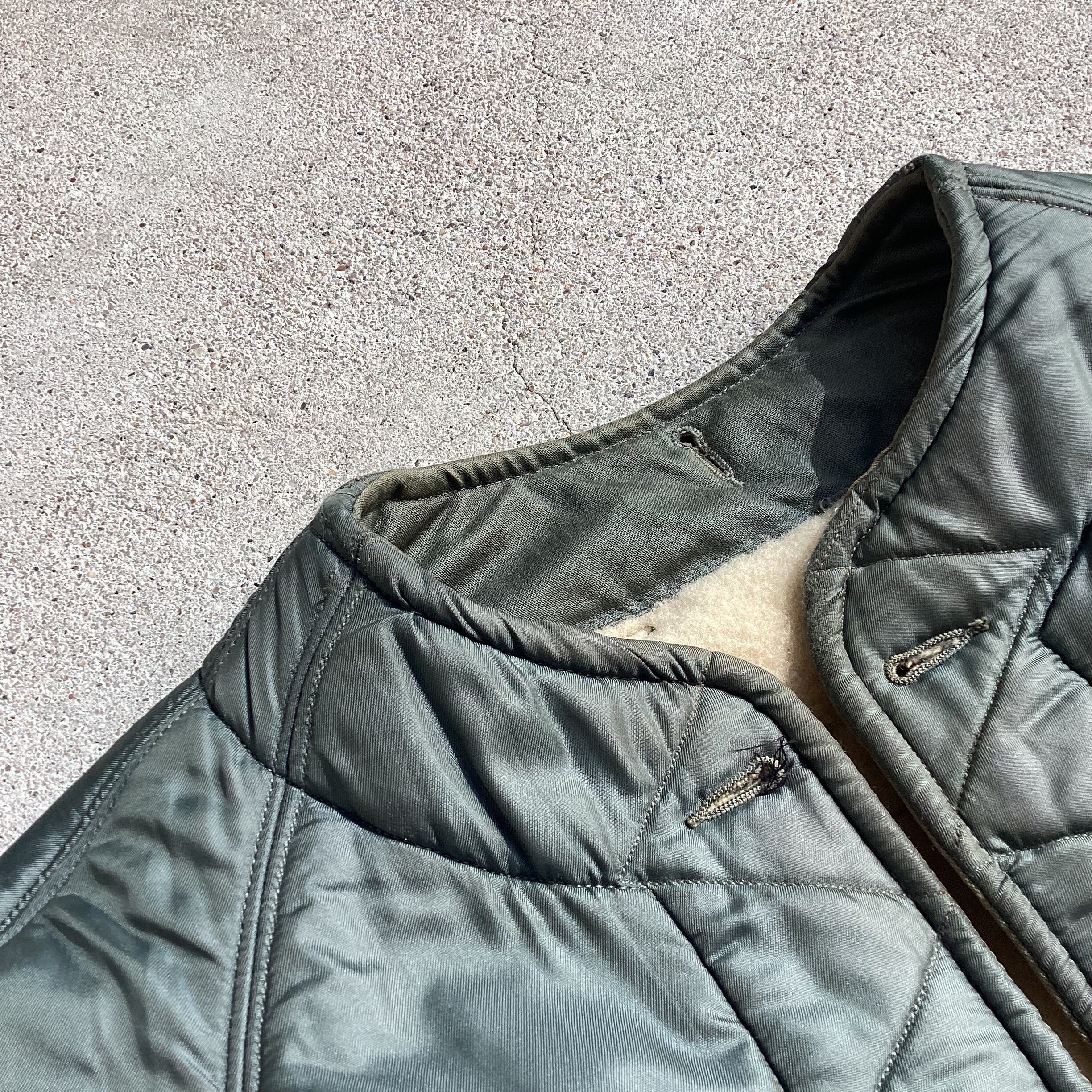 58年度会計、米空軍でいうフィールドジャケットのライナーですね。サンフェードも相まって非常に良い雰囲気に仕上がっております。それ以外は本当に50年代なのかと疑うぐらいのコンディションです。カーディガンの上位互換的な使い方が良さそうです。グレー混じりのグリーンカラーが渋いです。内側のボアはフッカフカです。