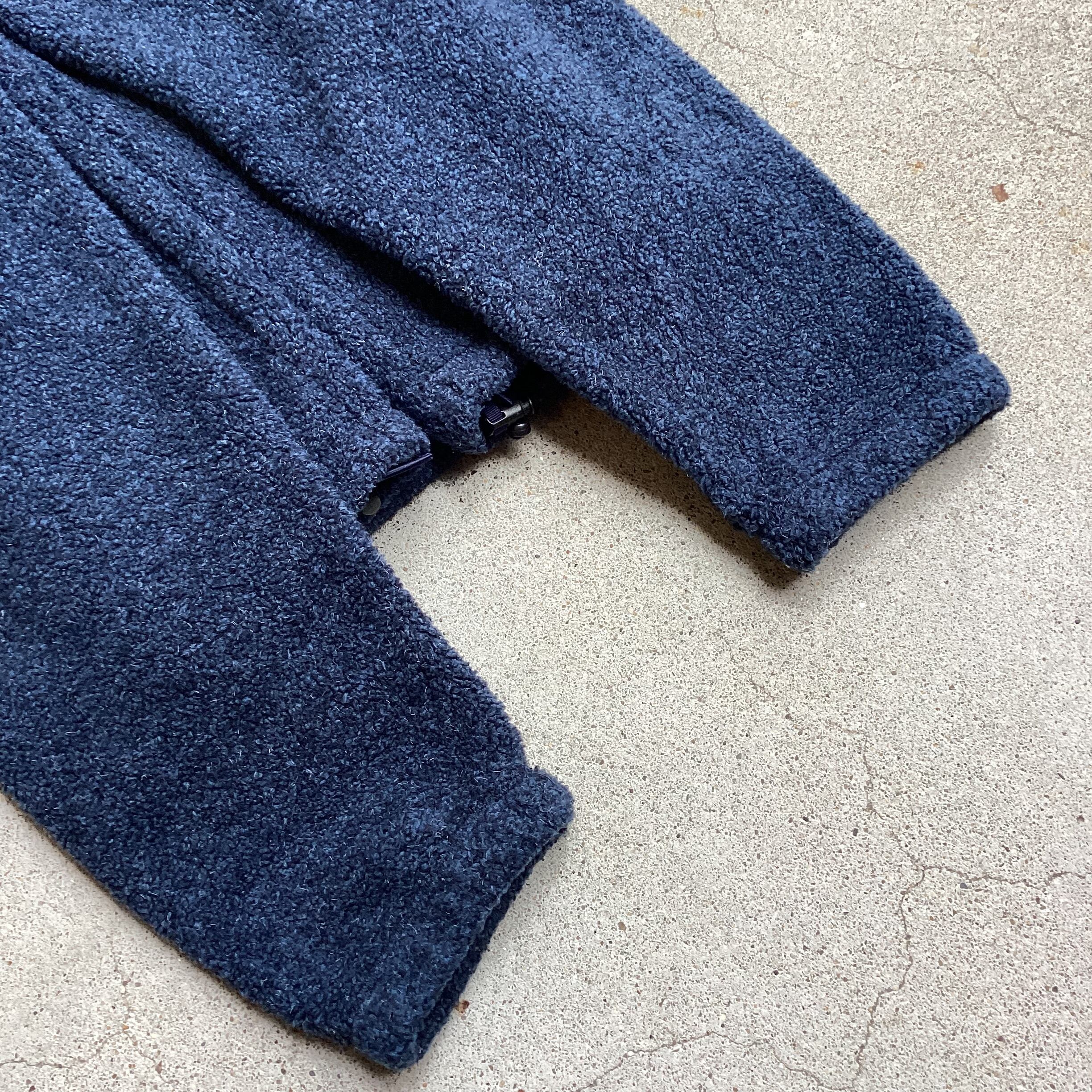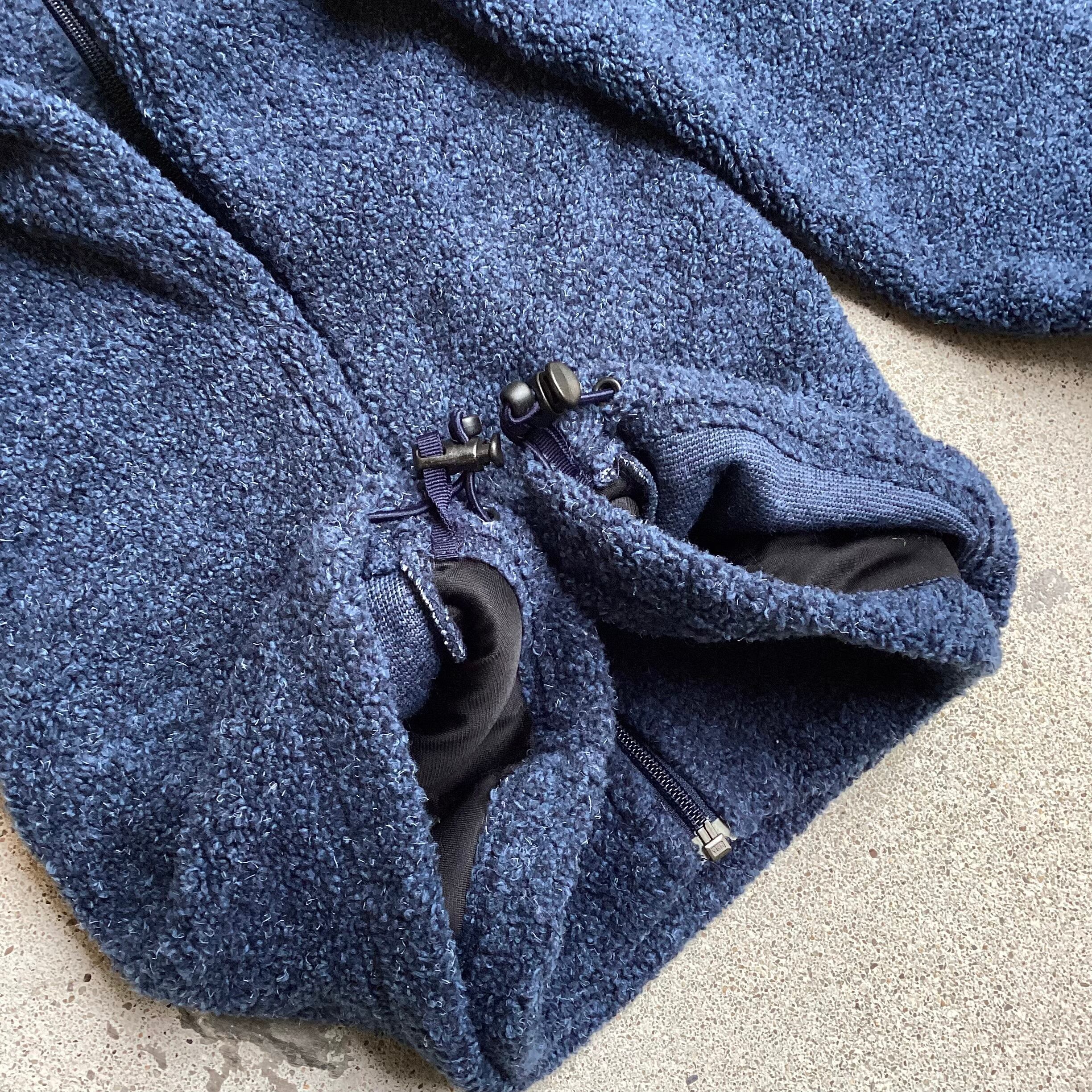 90-00年代頃のカベラス、フリースジャケットになります。大枠はレトロXなんかをサンプリングしてそうですが、個人的には断然こっちの方がファッショナブルで、より現代的にアップデートされているなと感じますね。大ぶりなボアフリース、アクリルポリの混紡でメランジのようなミックス素材、襟先2トーンカラー、ドローコードに袖ポケットなど、かなり凝ってます。それでいてしっかり大きめのサイズ感で、もちろん保温性も抜群ですし、アウター級の活躍をしてくれるでしょう。いろんなものに目を向けていきたいですね。