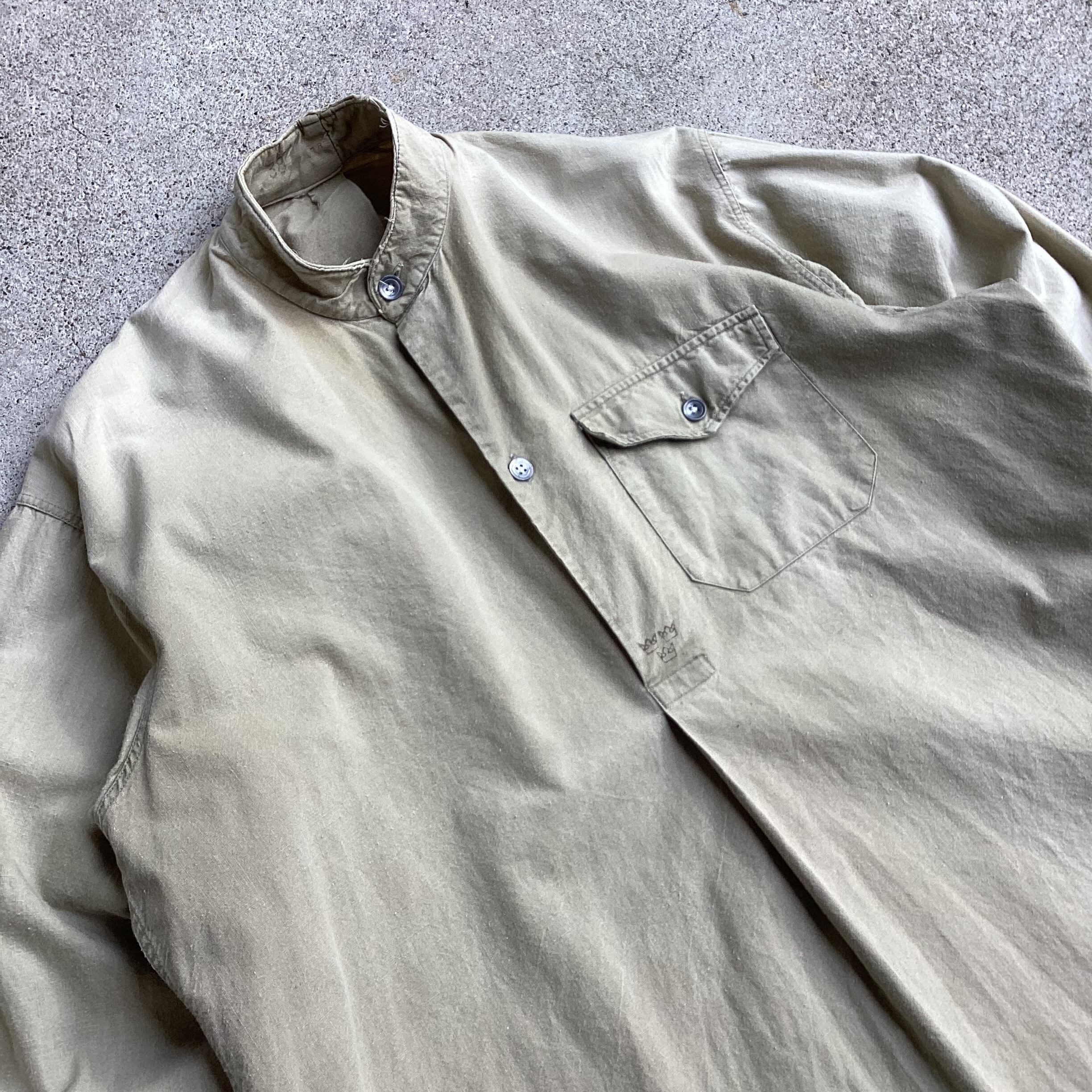 40s Swedish Army M39 スタンドカラー プルオーバーシャツ メタルボタン マチ付 片ポケ