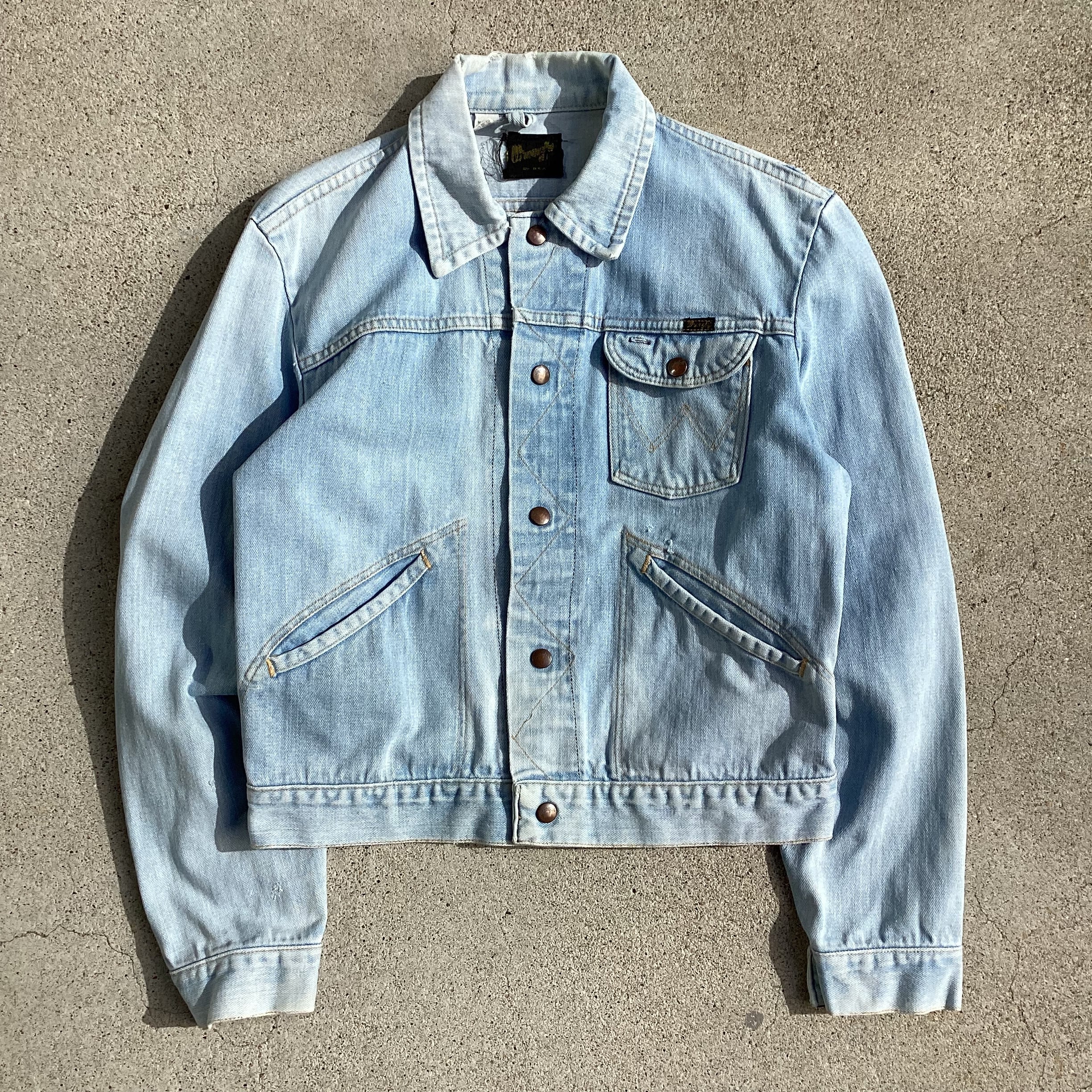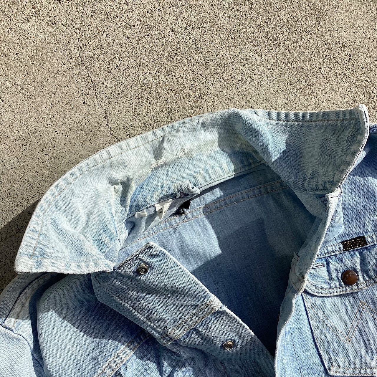 70s Wrangler 11MJZスタイル デニム ジャケット スナップボタン 黒タグ メンズサイズ表記M アイスブルー 雰囲気抜群 レア
