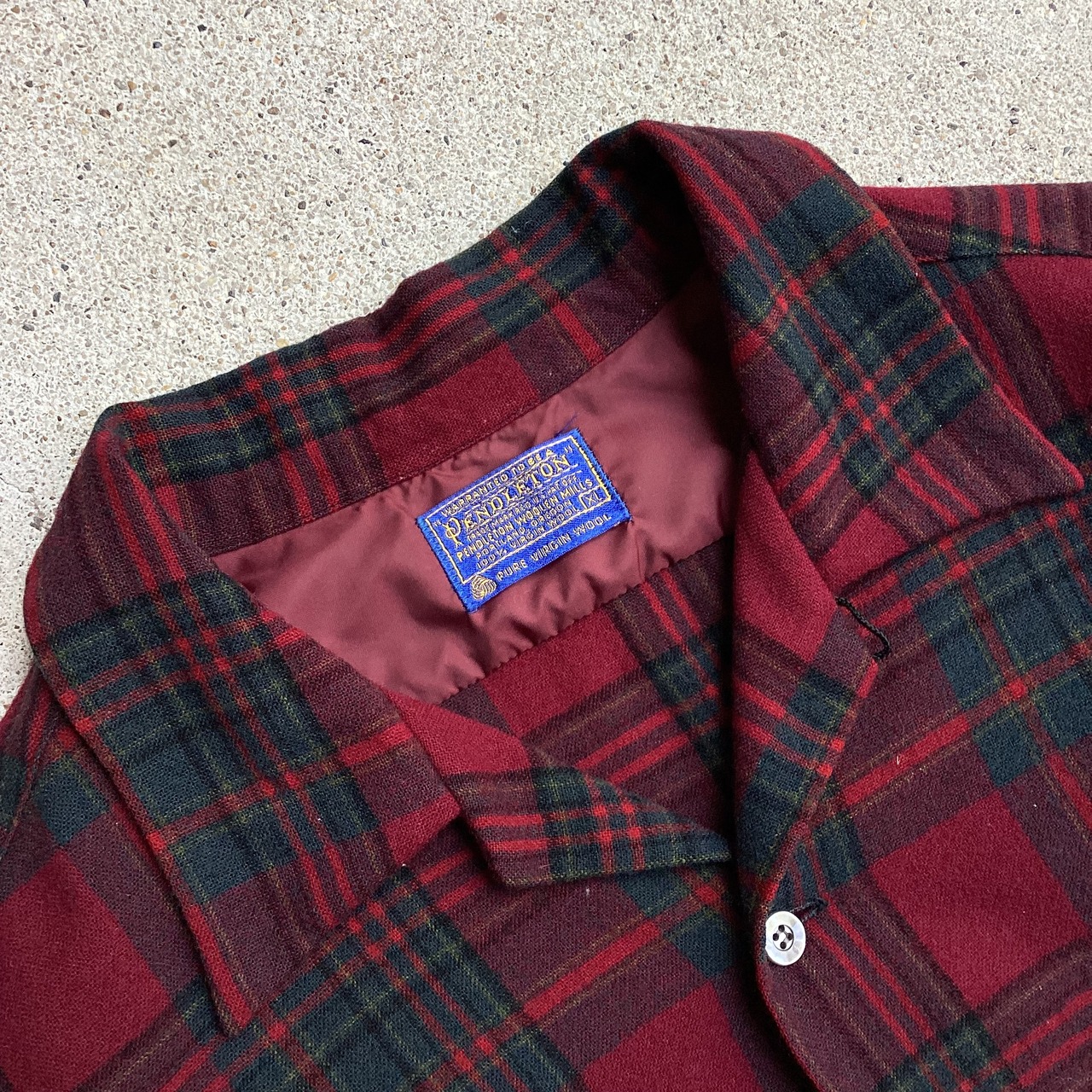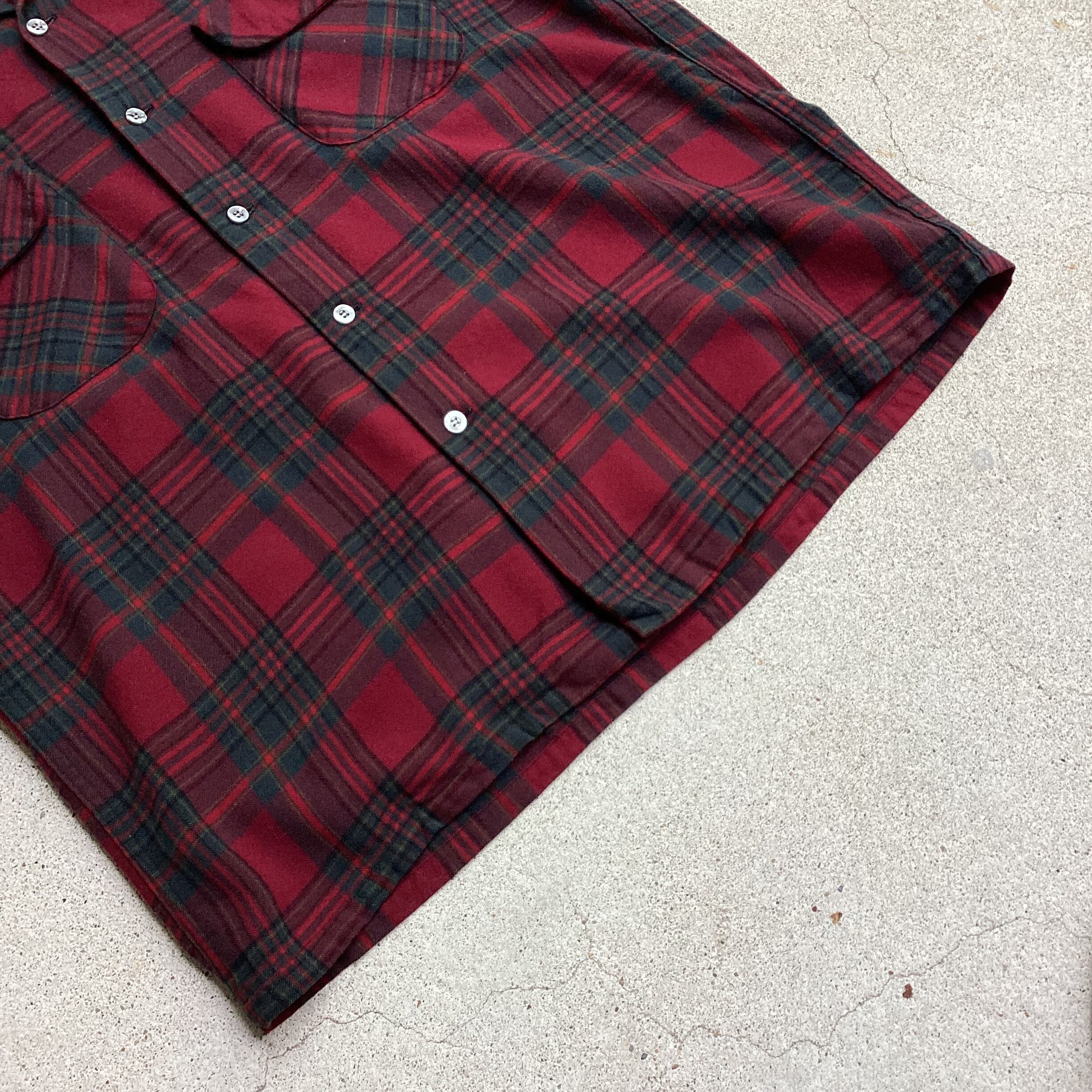 70s PENDLETON ウール プレイド パターン オープンカラーシャツ ボードシャツ フラップポケット XL グッドパターン XL 横ノリ